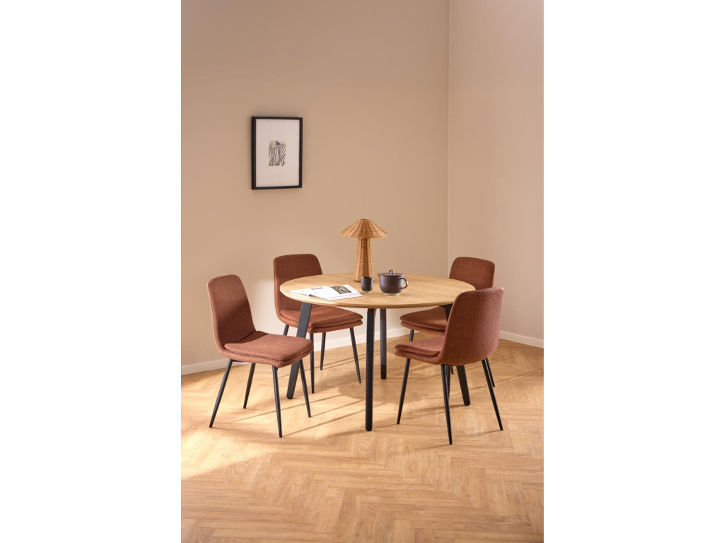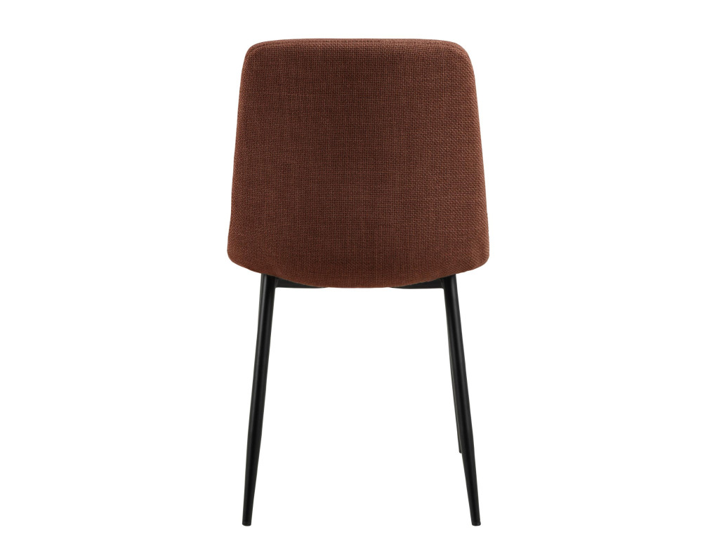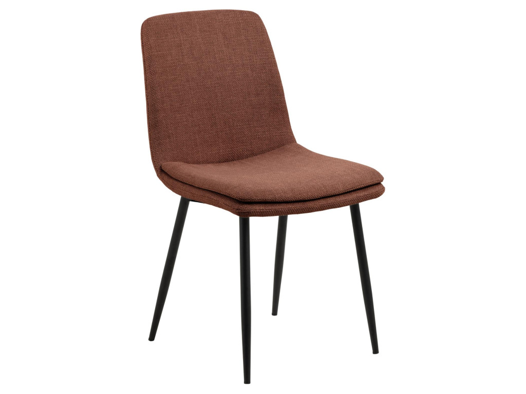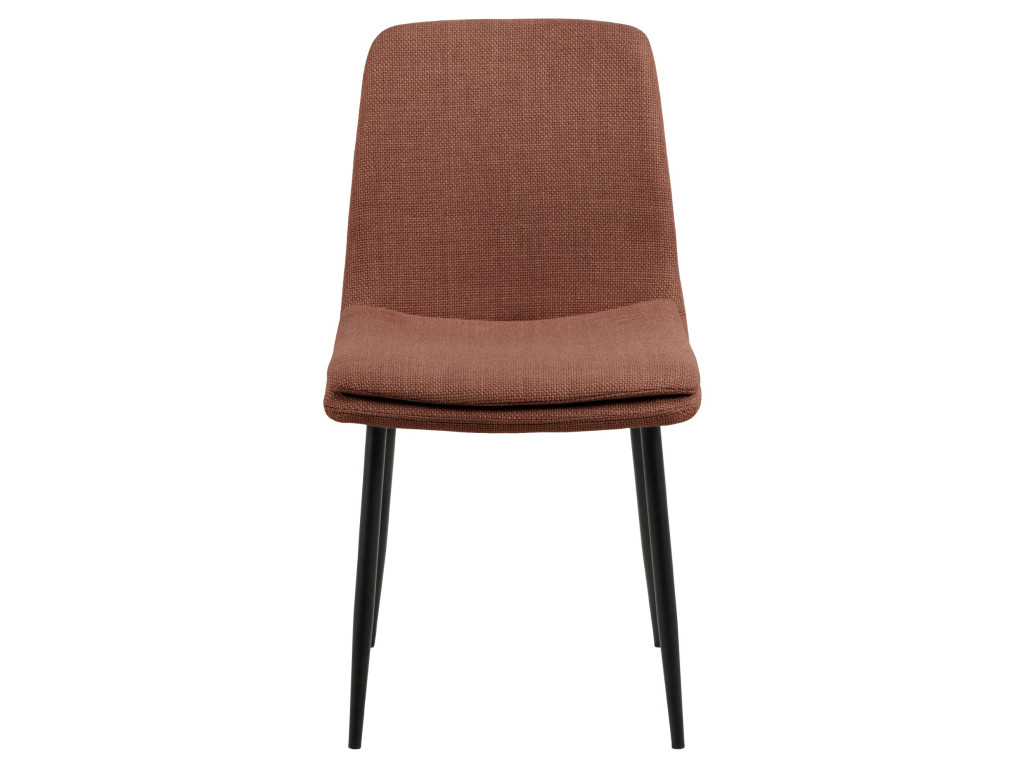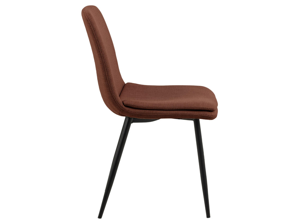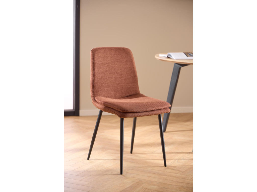 Stolička Becca spája čalúnenie v terakotovej látke Bazylej s industriálnym štýlom. Čierna kovová podnož dodáva pevnosť a moderný vzhľad. Ergonomické tvarovanie zabezpečuje komfort. Vhodná ako komplet pre jedálenské sedenie – balenie 4 kusy.
