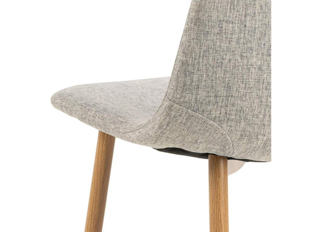 Stolička je dostupná v elegantnej farbe, v prevedení sivá / dub, tak ju ľahko zladíte s akýmkoľvek interiérom – od klasického až po moderný. Stabilná konštrukcia dodáva stoličke pevnosť a odolnosť, zatiaľ čo čalúnenie z príjemnej látky pôsobí luxusne a príjemne na dotyk.