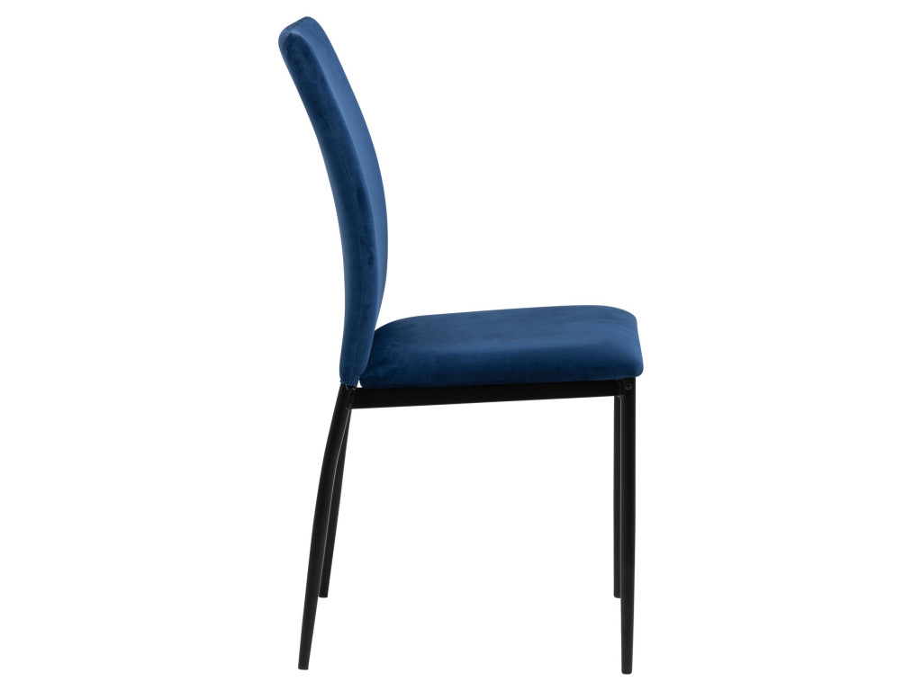 Stolička Demina v tmavomodrej farbe dodáva hĺbku a eleganciu každému jedálenskému priestoru. Čierna oceľová základňa je stabilná a vizuálne decentná. Čalúnenie z látky Dublin poskytuje komfort aj pri dlhšom sedení.
