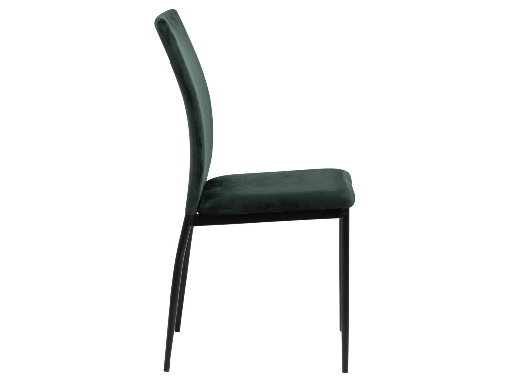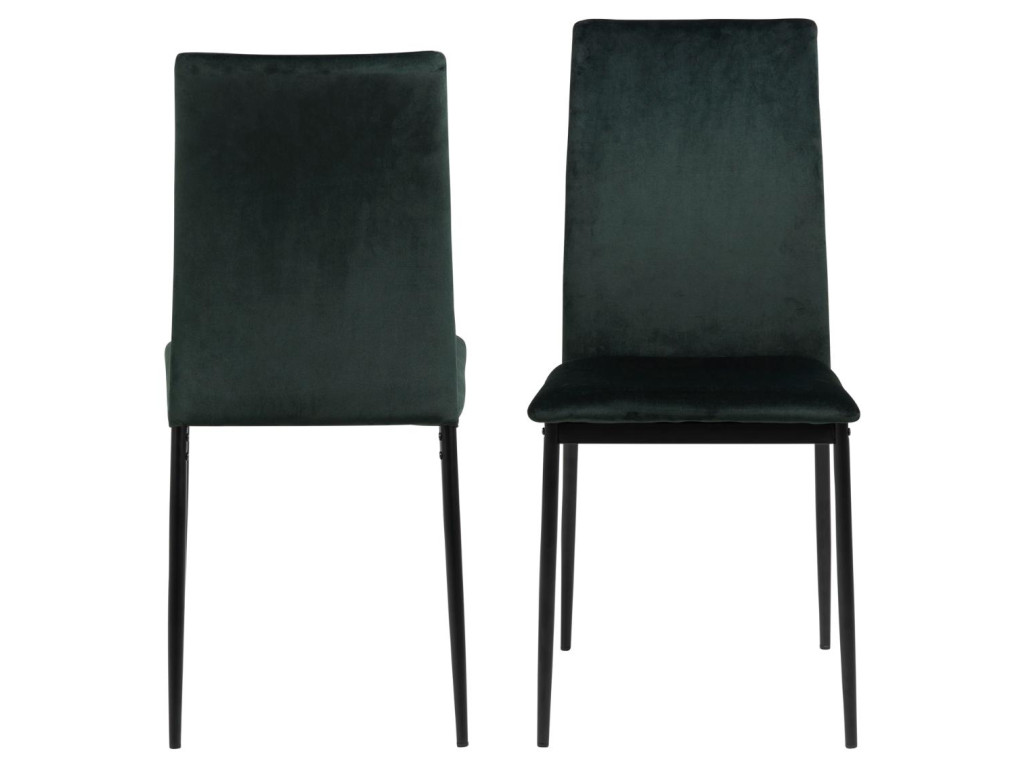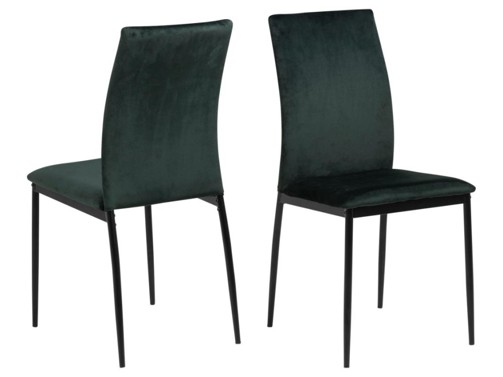 Zelená stolička Demina spája komfortné sedenie a moderný dizajn. Tmavozelená farba oživí interiér, zatiaľ čo čierna oceľová základňa zabezpečuje pevnosť. Skvelá voľba do jedální i kancelárskych priestorov. Balenie 4 ks.