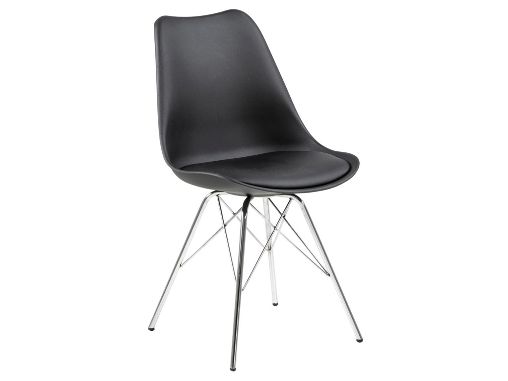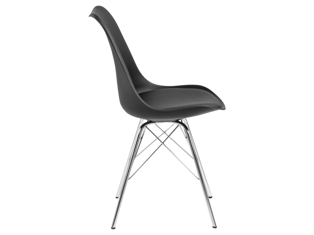 Stolička Eris v čiernej ekokoži je štýlovým a odolným riešením do moderných domácností. Chrómová základňa prináša eleganciu a stabilitu zároveň. Ergonomické tvarovanie a kvalitné čalúnenie zabezpečujú pohodlné sedenie. Balenie obsahuje štyri kusy, vhodné pre kompletné jedálenské zostavy.