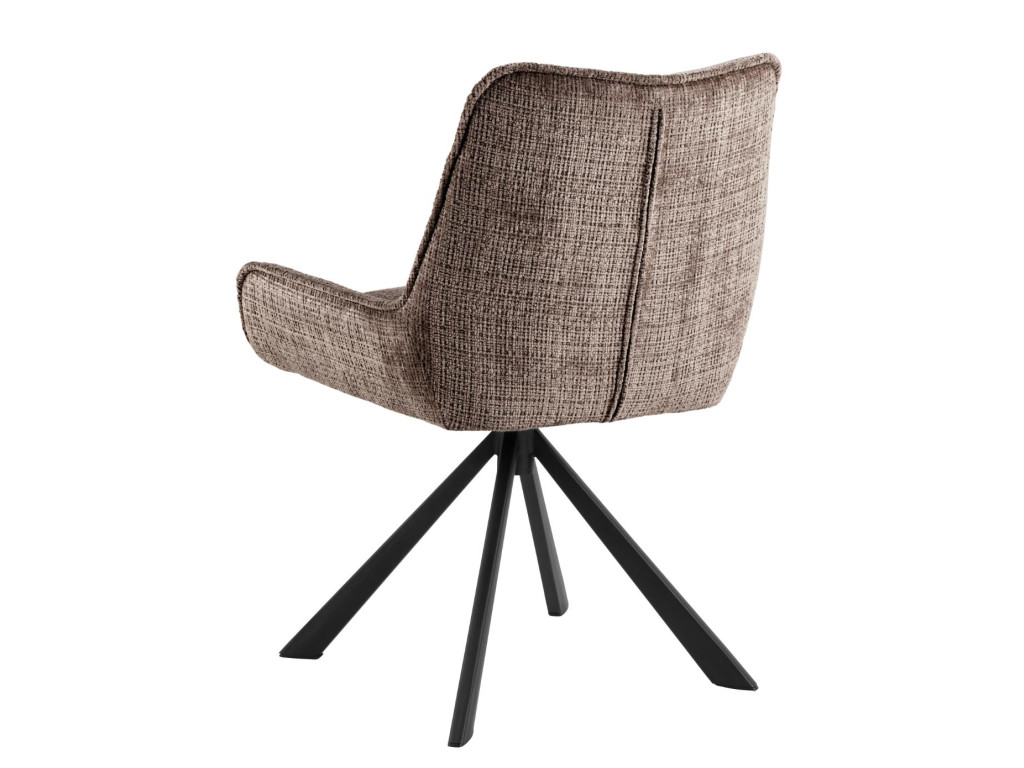 Jedálenská stolička Eddie kombinuje hnedé čalúnenie s čiernou kovovou podnožou pre nadčasový vzhľad. Široké sedadlo ponúka komfortné sedenie pri každom stolovaní. Kvalitná látka je príjemná na dotyk a ľahko udržiavateľná. Vhodná do rustikálnych aj industriálnych interiérov.