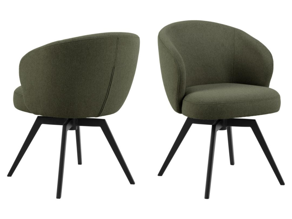 Kreslo Darlene v zelenom odtieni Alea FR čalúnenia a s matnou čiernou oceľovou konštrukciou prináša luxusný vzhľad s maximálnym komfortom. Je vybavené taštičkovými pružinami, automatickým návratom a trojitým prešívaním, čo z neho robí ideálnu voľbu do moderných jedální. Rozmery: 80 × 58,5 × 60 cm.