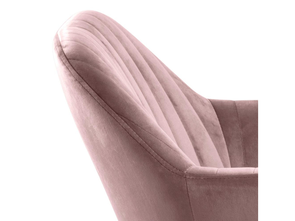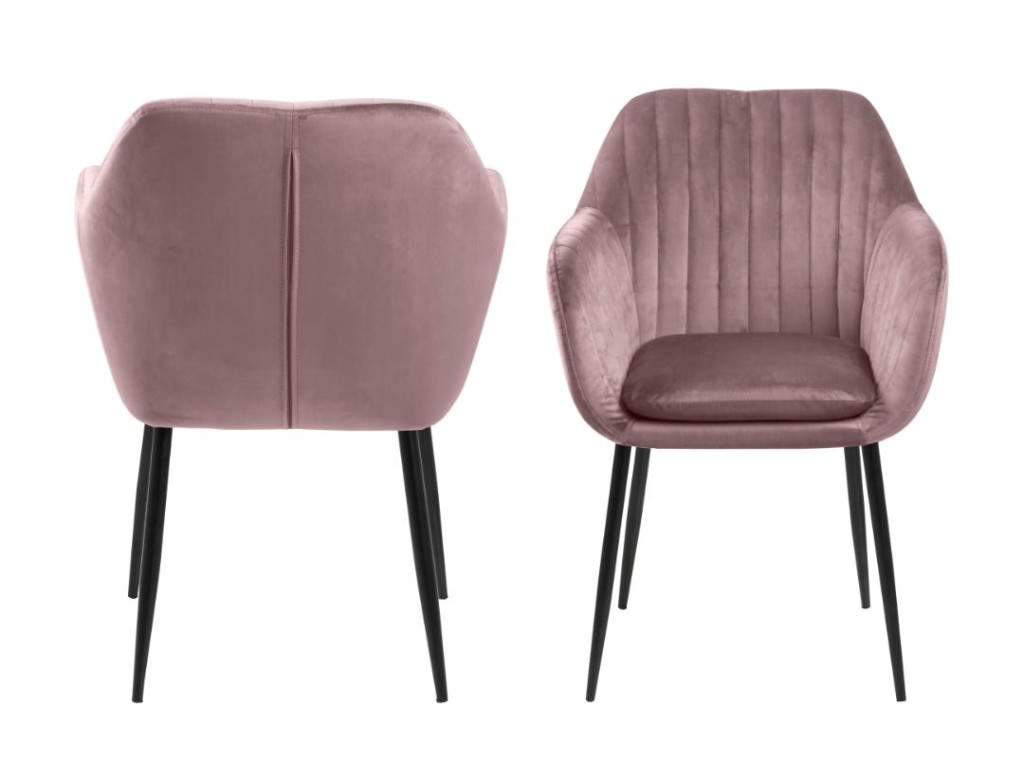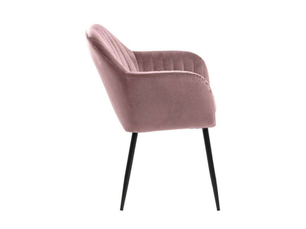 Kreslo Emilia v odtieni zaprášenej ružovej je jemným a zároveň výrazným doplnkom interiéru. Komfortné čalúnenie a pevná oceľová základňa zabezpečujú dlhodobé pohodlie. Lakťové opierky a vertikálne prešívanie pridávajú eleganciu. Ideálne na dlhé stolovania aj ako dizajnový prvok.