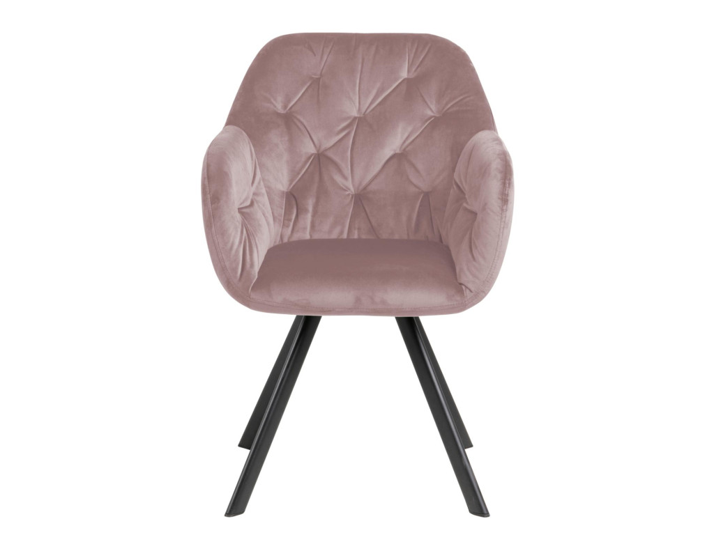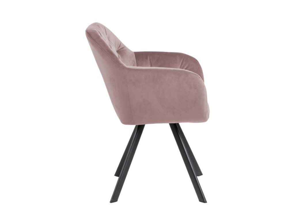 Elegantné kreslo Lola s lakťovou opierkou zaujme jemným odtieňom zaprášenej ruže a modernou čiernou oceľovou základňou. Vďaka čalúneniu a automatickému návratu poskytuje nielen pohodlie, ale aj funkčný komfort. Jemné všívanie dotvára vizuálnu eleganciu. Ideálna voľba do štýlových jedální či salónikov.