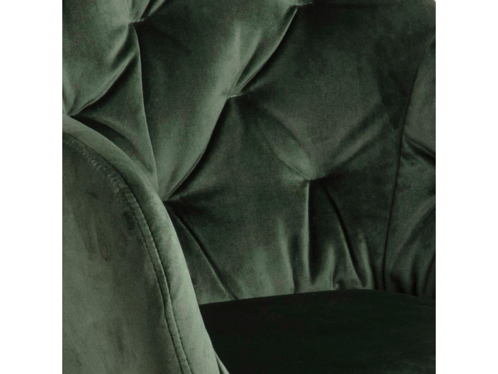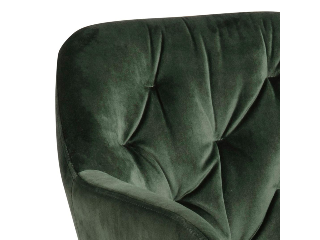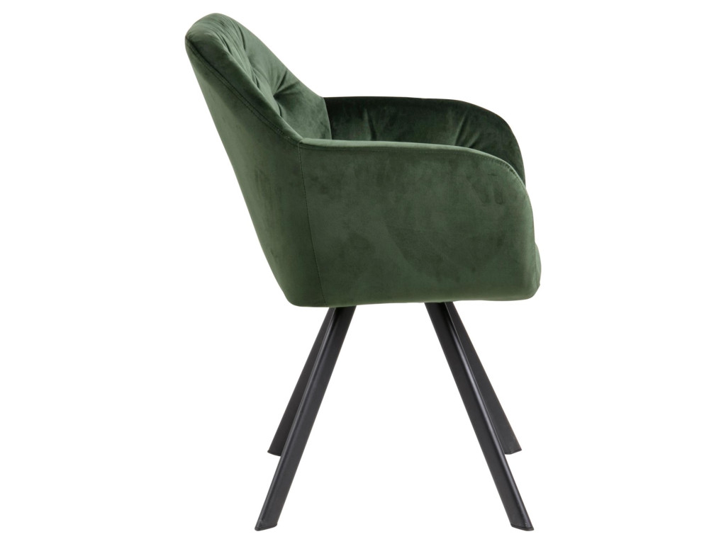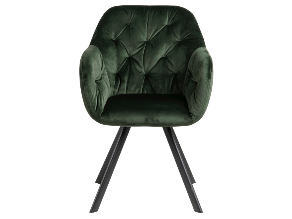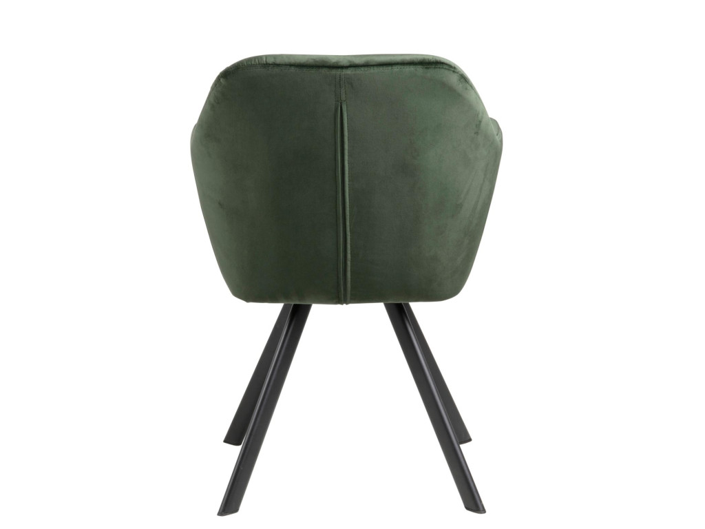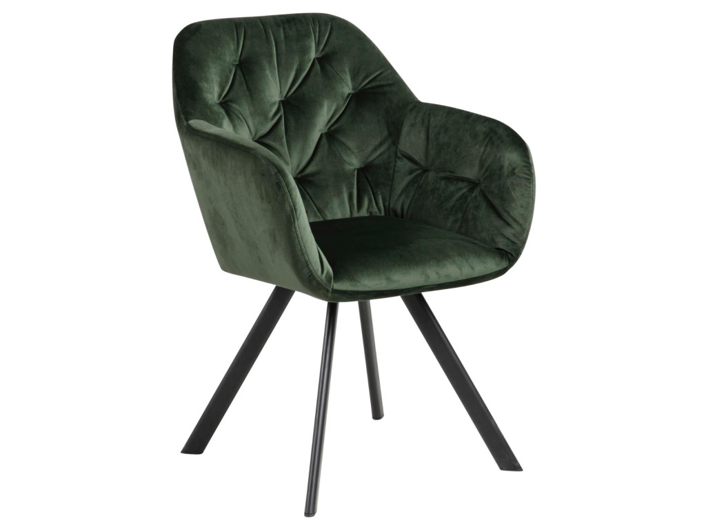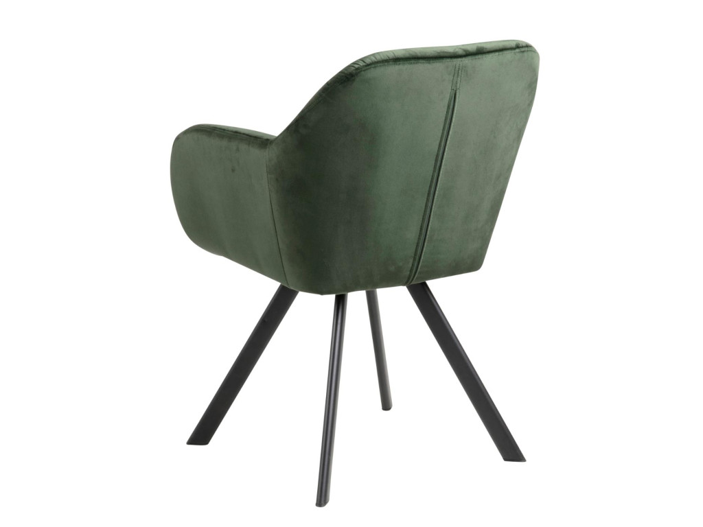 Jedálenské kreslo Lola v lesnej zelenej farbe kombinuje funkčnosť a svieži vzhľad. Čierna kovová základňa je pevná a stabilná, čalúnenie zabezpečuje pohodlie. Ideálne ako dizajnový prvok v jedálni. Vhodné aj na dlhšie sedenie.