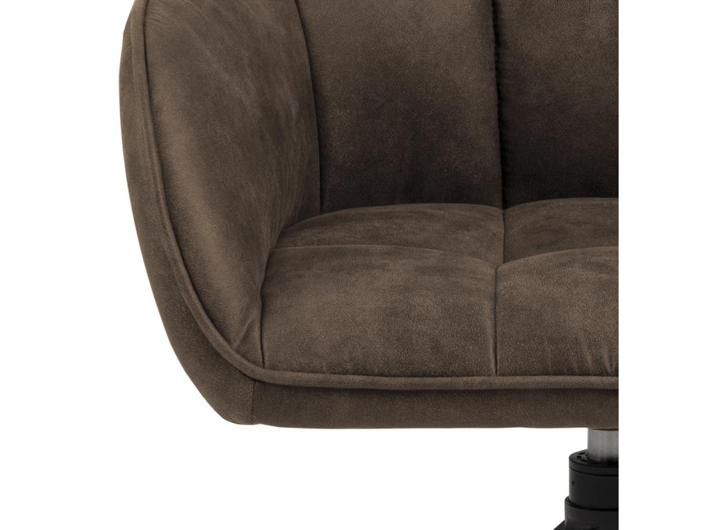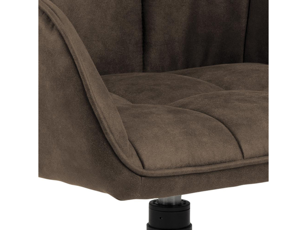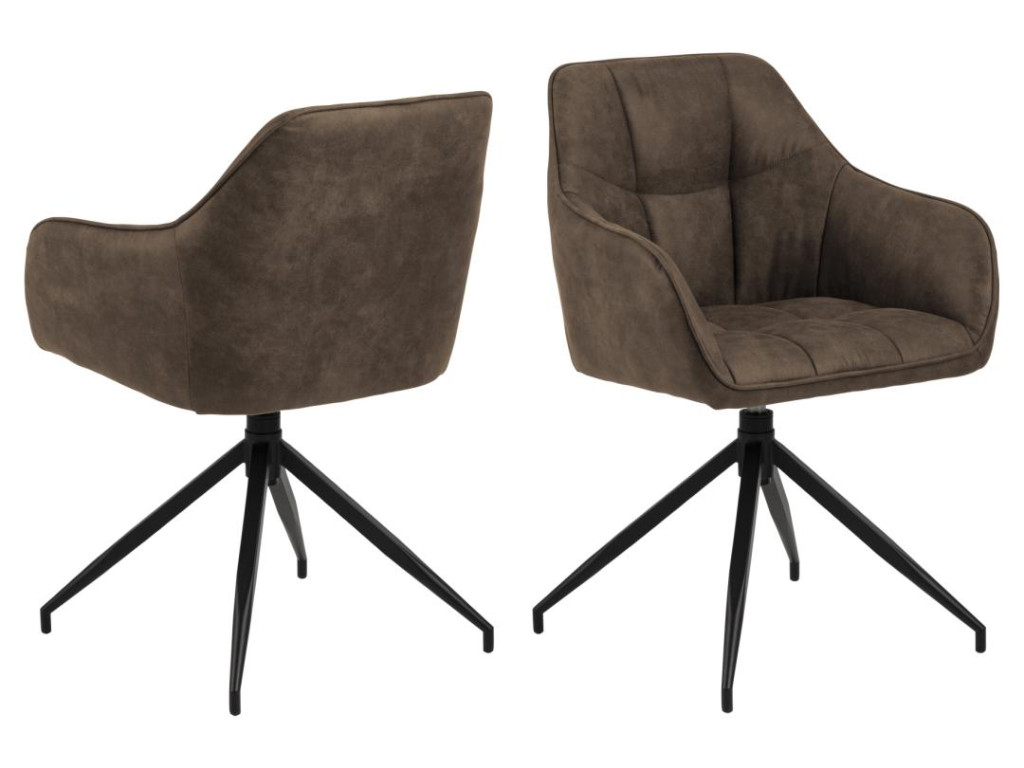 Kreslo Brenda kombinuje svetlohnedé čalúnenie s čiernou oceľovou základňou. Lakťové opierky, štvorcové prešívanie a otočný mechanizmus ponúkajú vysoký komfort a moderný vzhľad. Vhodné do jedální aj pracovných kútov.
