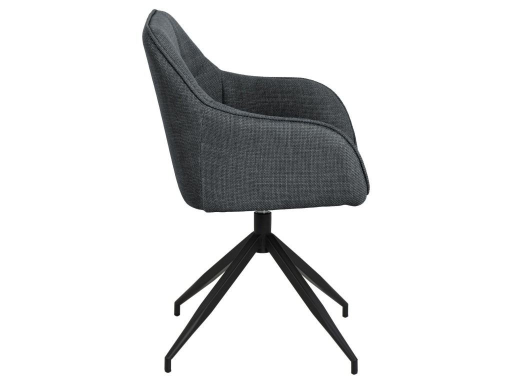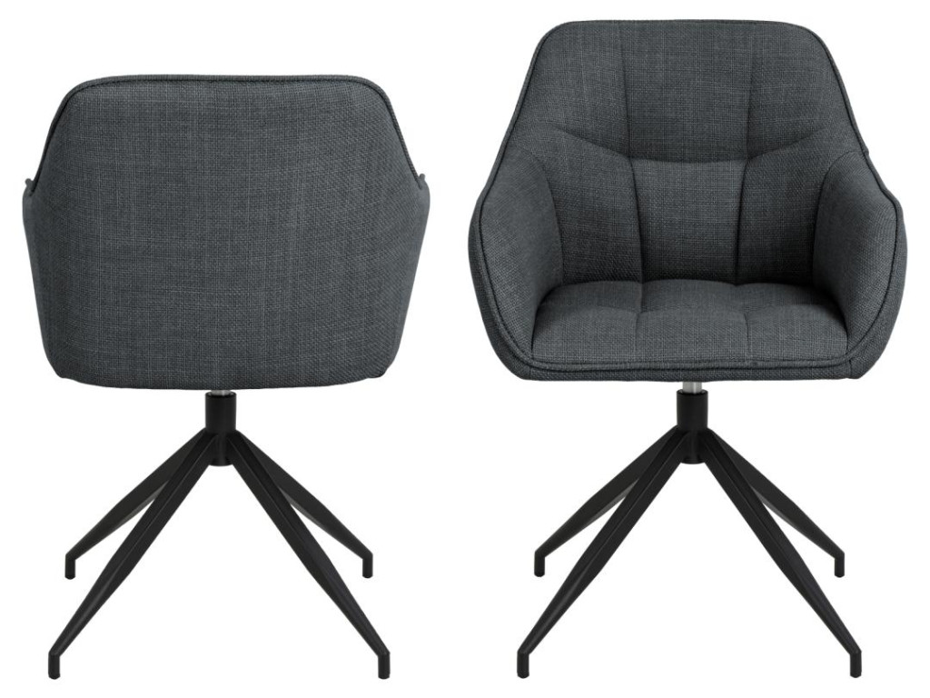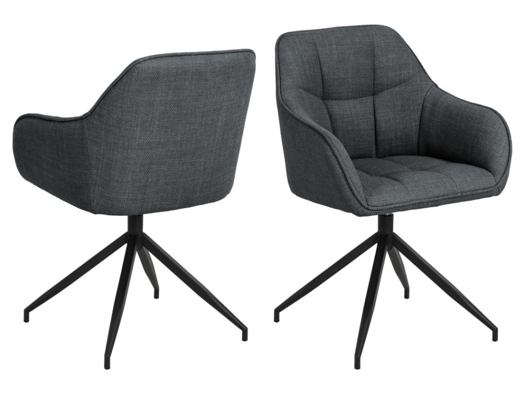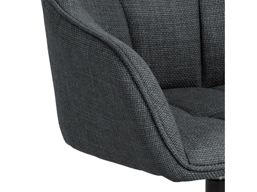 Kreslo Brenda ponúka komfort a moderný vzhľad vďaka štvorcovému prešívaniu a praktickej otočnej funkcii. Sivý textilný poťah a čierna oceľová základňa sa hodia do rôznych typov interiérov. Vďaka lakťovým opierkam je ideálne aj na dlhšie stolovanie.