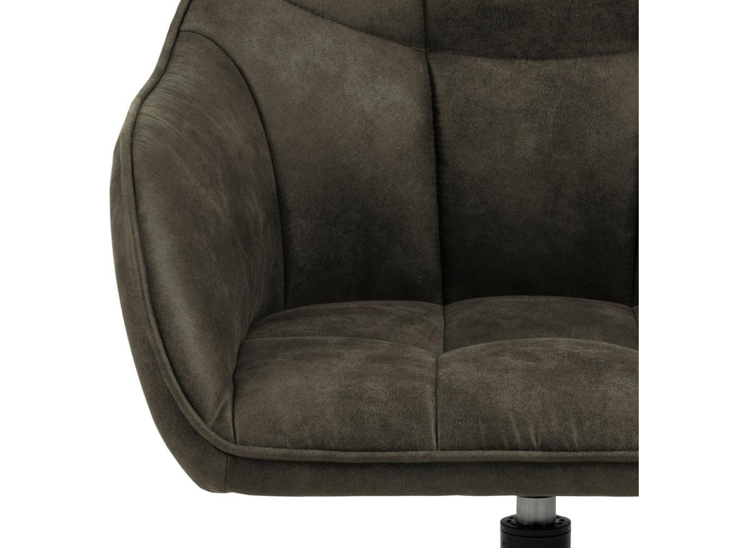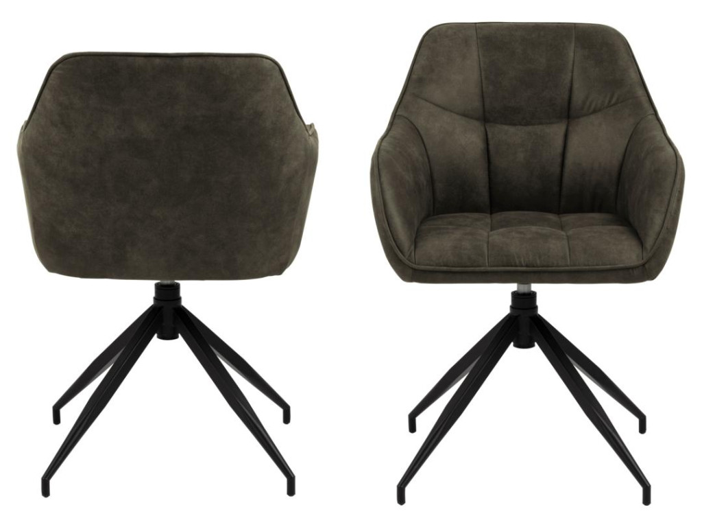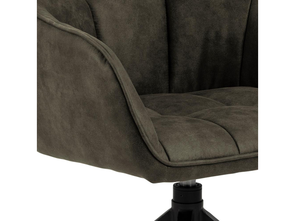 Kreslo Brenda s pohodlným čalúnením v olivovo zelenej farbe je ideálne pre dlhé stolovanie. 4-hviezdicová otočná oceľová základňa z matnej čiernej ocele prináša maximálnu flexibilitu. Prešívanie a gombíkový detail zvyšujú estetiku a pohodlie. Skvelá voľba do moderných domácností.