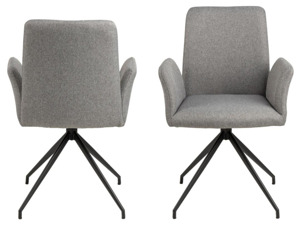 Jedálenské kreslo Naya v svetlosivej látke Malmö s otočnou konštrukciou prináša komfort a moderný štýl. Čierna 4-hviezdicová základňa z ocele zaručuje stabilitu a dlhú životnosť. Ideálne do jedální aj pracovných priestorov. Čalúnené prevedenie poskytuje pohodlné sedenie aj počas dlhšieho stolovania.