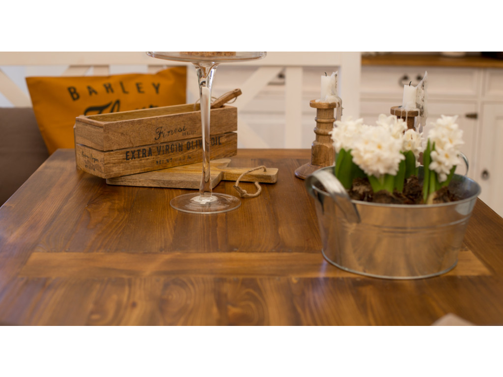 Povrchovú úpravu stola si môžete zvoliť podľa vlastných predstáv. Na výber máte nielen množstvo farieb, ale môžete si vybrať aj úpravu vosk alebo lak. Kresba dreva je plne zachovaná. Prekrytie povrchu ekologickým lakom dodatočne chráni pred mechanickým poškodením.