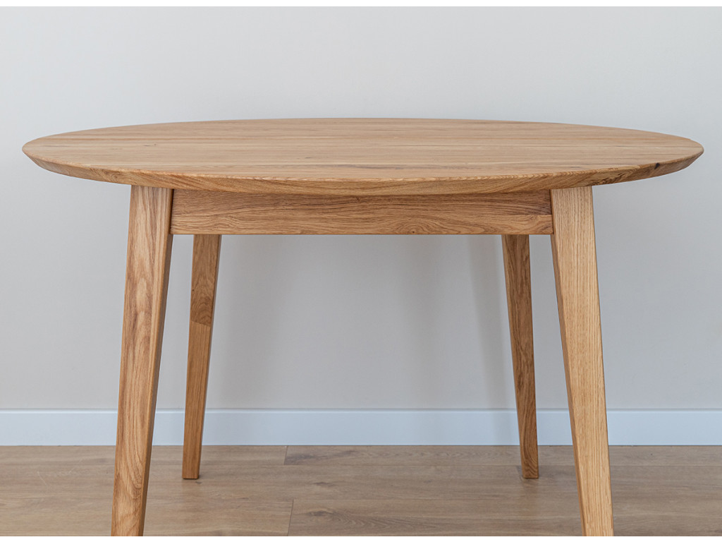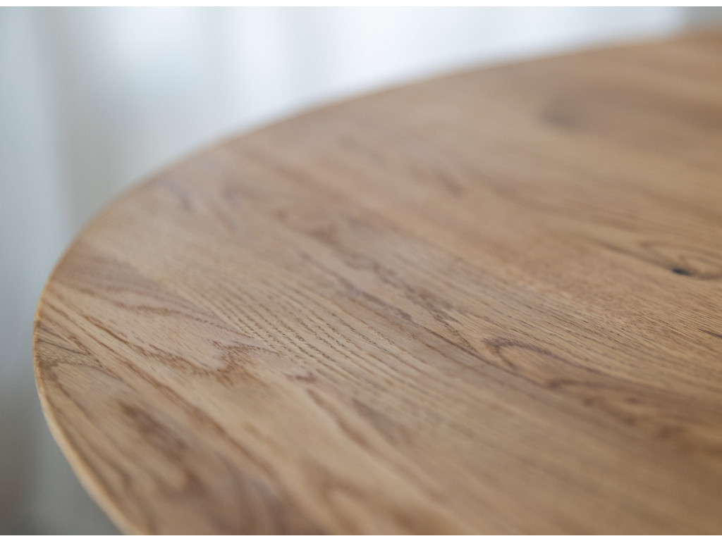 Jedálenský stôl z masívu Tello je pre všetkých, ktorí milujú komfort a eleganciu. Je vyrobený z dubového dreva, ktoré sa pýši moderným vzhľadom, prirodzenou kresbou dreva a odolnosťou voči poškodeniu. Okrúhly jedálenský stôl v minimalistickom dizajne zapadne do modernej jedálne.