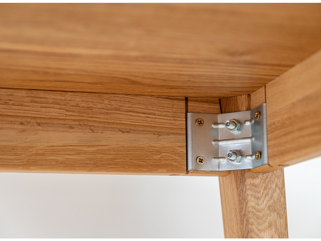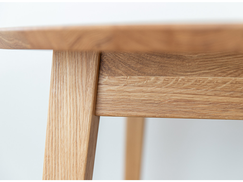Stôl do jedálne Tello je vyrobený z pevného a stabilného dubového dreva, vďaka ktorému sa z neho budete tešiť dlhé roky. Dubové drevo zaisťuje nábytku odolnosť a trvácnosť. Prirodzená dubová farba sa jednoducho ladí s ďalším nábytkom a dekoráciami v interiéri. Celý kus nábytku je naolejovaný, aby bola zaistená jeho trvanlivosť. Na povrchu budete môcť pozorovať prirodzenú kresbu dreva, ktorá sa časom stane výraznejšou vďaka procesu starnutia dreva.