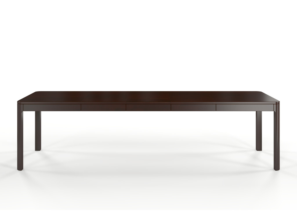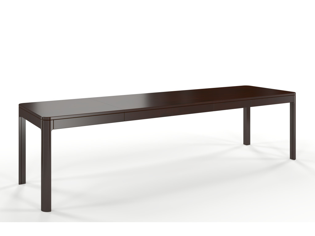 Elegantný rozkladací stôl Ruby z masívneho bukového dreva v tmavej farbe palisanderu je zameraný na rodinné stretnutia. S nastaviteľnou dĺžkou od 140 cm do 260 cm je ideálny na každodenné stolovanie, ale o to viac užitočný pre veľké rodinné kruhy. Zaoblené nohy a pevná doska zvyšujú jeho stabilitu, zatiaľ čo synchrónne vodidlá zabezpečujú ľahké rozkladanie.