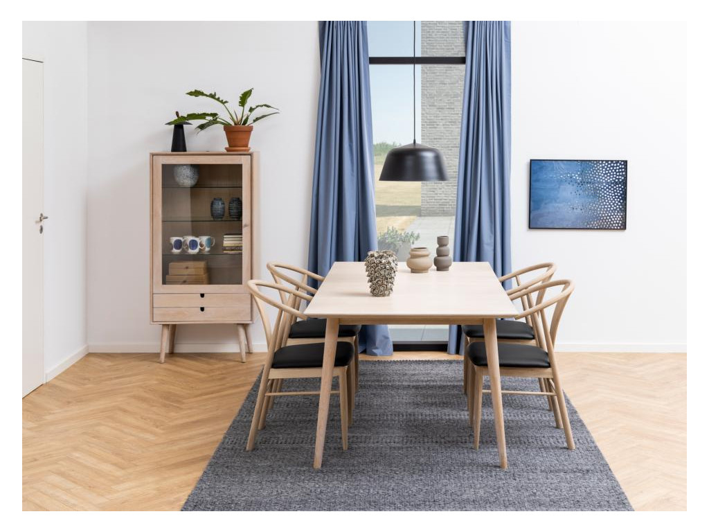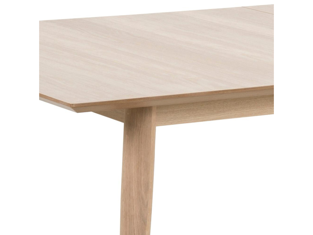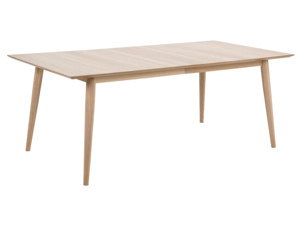 Robustný obdĺžnikový stôl z bielenej olejovanej dubovej dyhy kombinuje tradičné remeselné spracovanie s moderným vzhľadom. Disponuje úložným priestorom na prídavné dosky a pripravený je aj na ich rozšírenie. Rozmery 200 × 100 × 75,3 cm ponúkajú dostatok priestoru aj pre väčšie rodiny. Nadčasový kúsok do klasicky i moderne zariadeného interiéru.