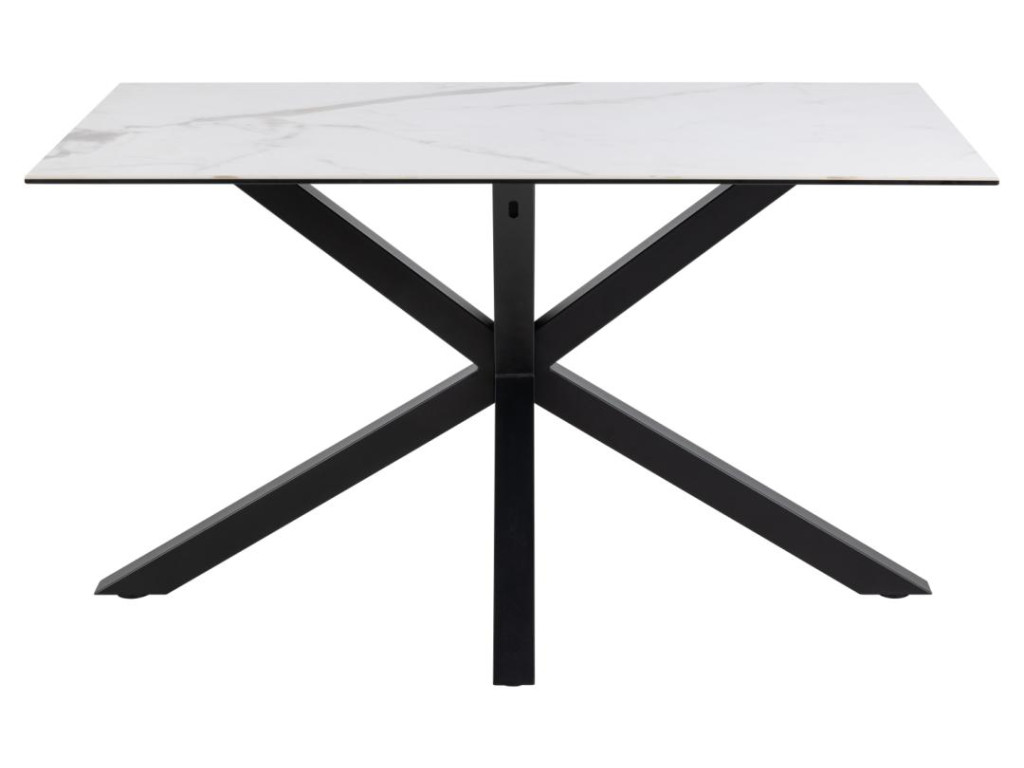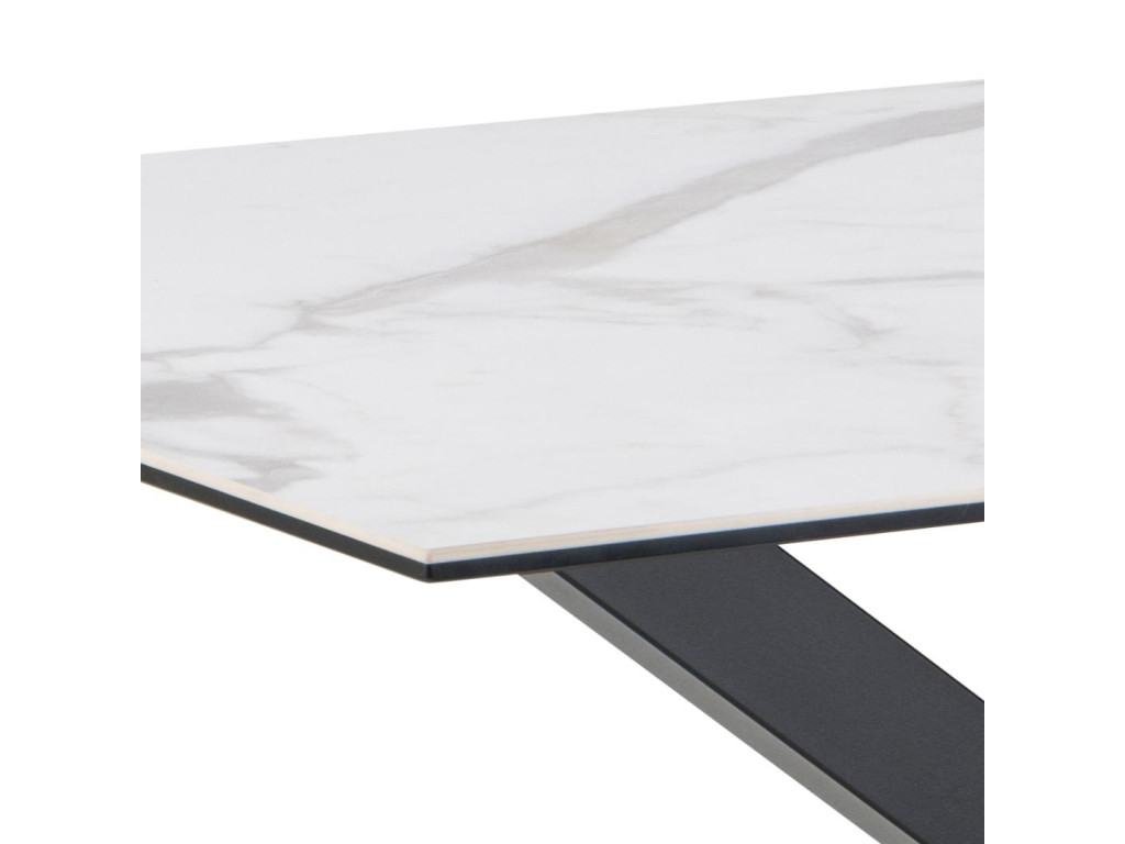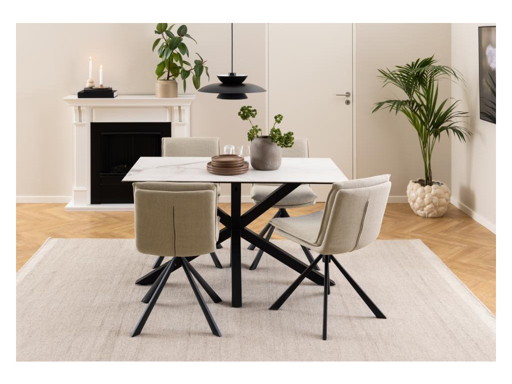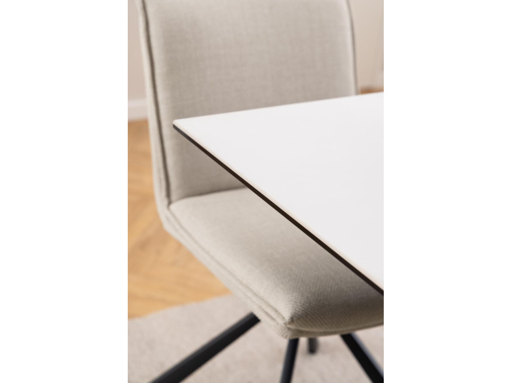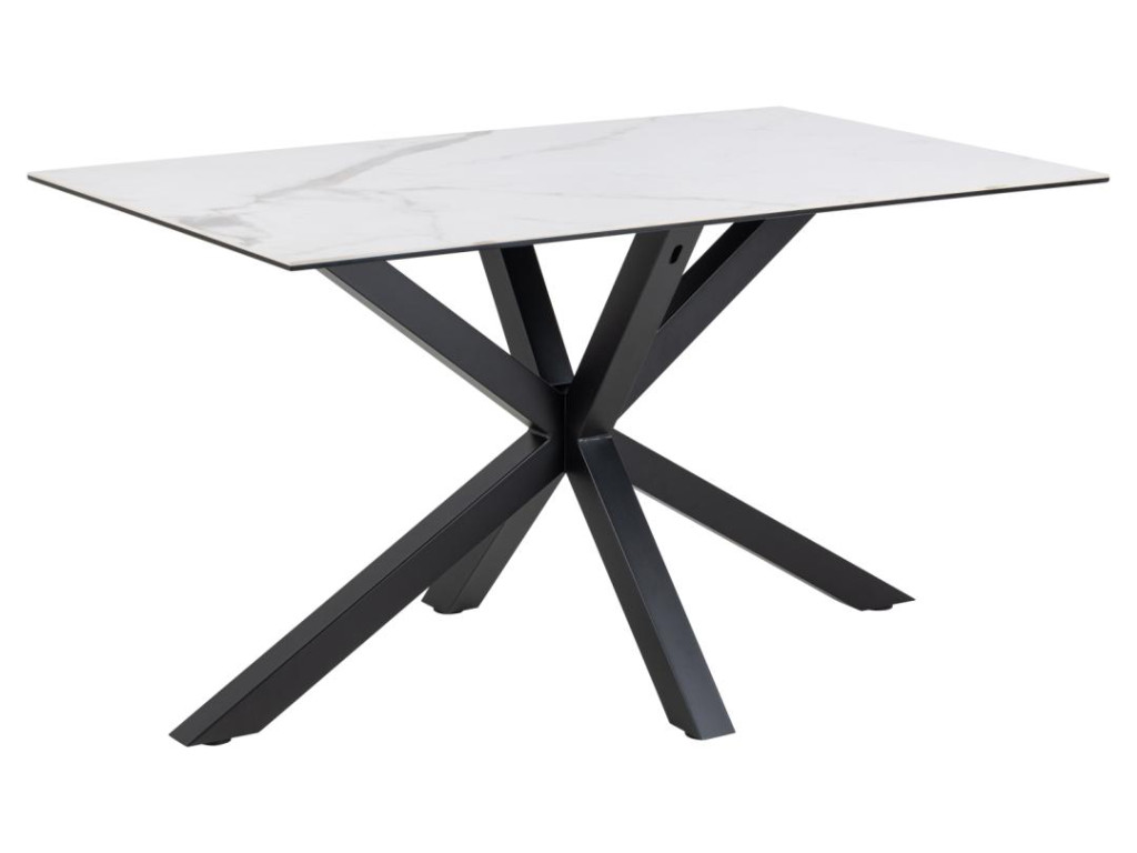 Moderný a kontrastný jedálenský stôl, ktorý zaujme svojím čistým vzhľadom a praktickým prevedením. Doska z bielej keramiky Akranes s drsnou textúrou pripomína biely mramor a je odolná voči teplu aj poškriabaniu.
