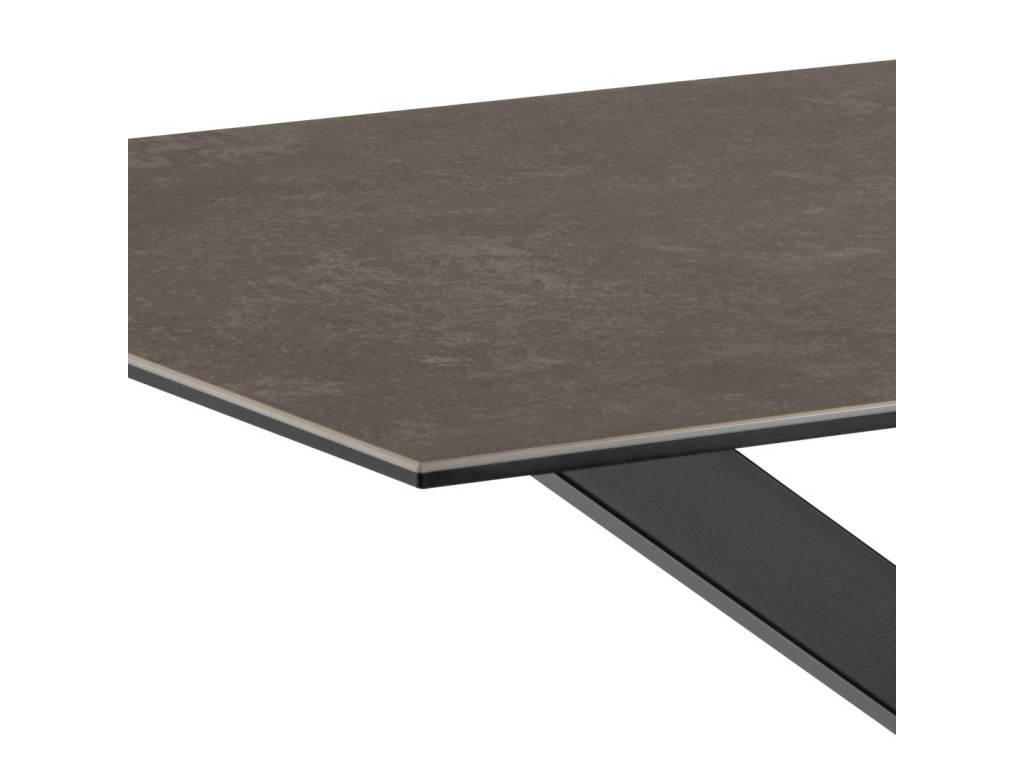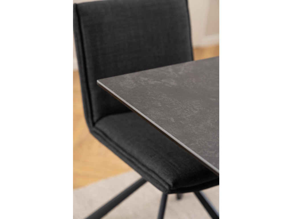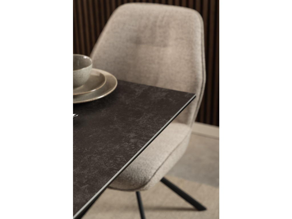 Stôl Heaven v tmavej keramickej verzii ponúka moderný vzhľad s nádychom elegancie. Čierna keramická doska je praktická a odolná, čo ocení každá domácnosť. Krížová podnož zabezpečuje stabilitu bez toho, aby rušila vizuálny štýl. Vhodný na každodenné aj slávnostné stolovanie.