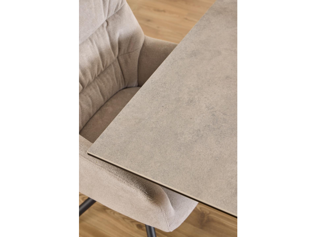 Tento stôl spája prirodzenú krásu šedej keramiky Anista a výrazný moderný dizajn. Doska je drsná na dotyk, ale ľahko udržiavateľná – skvelá kombinácia pre každodenné použitie.