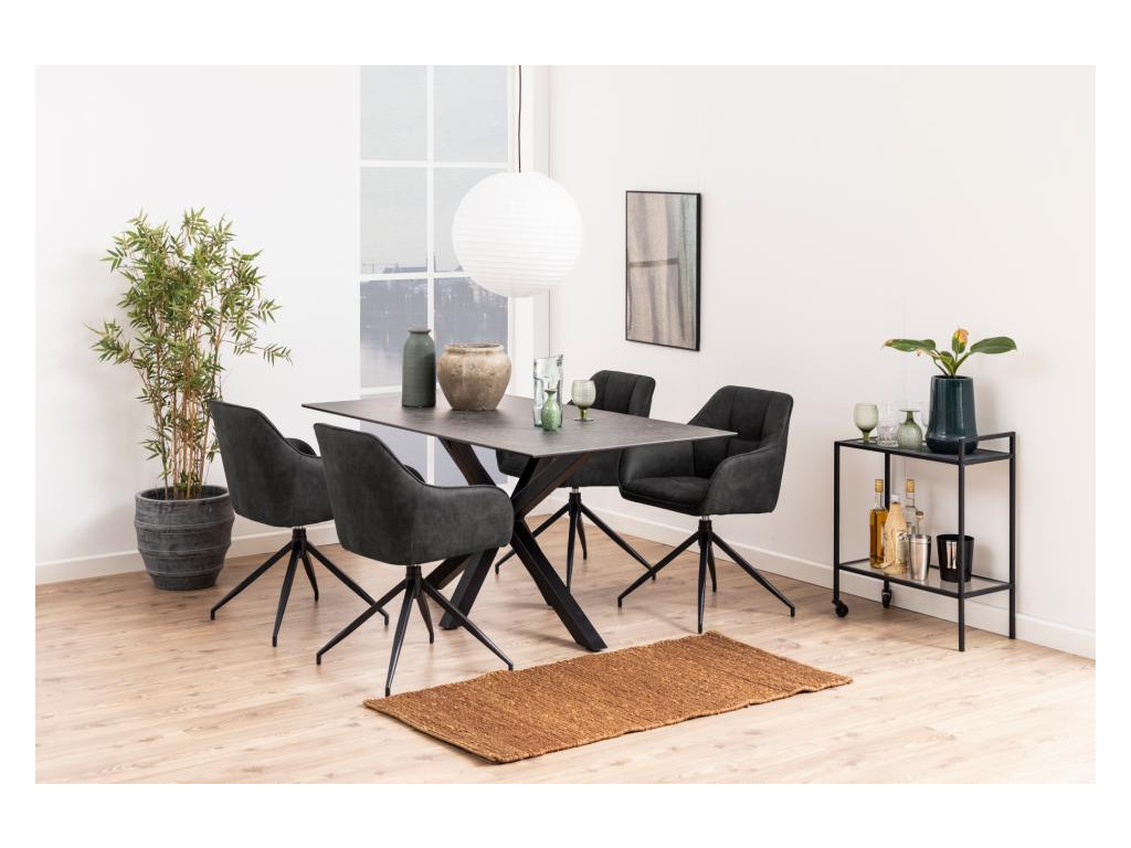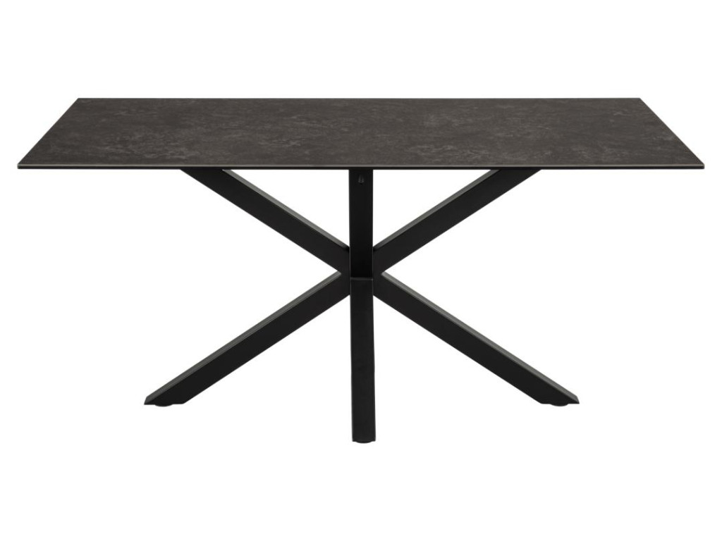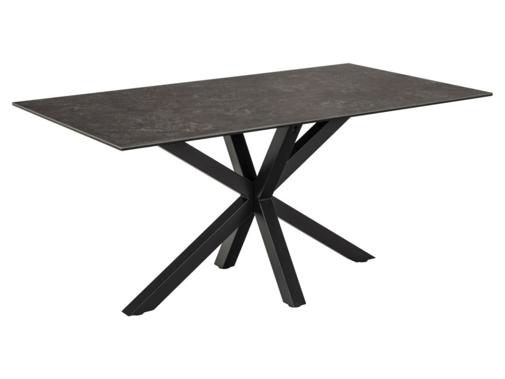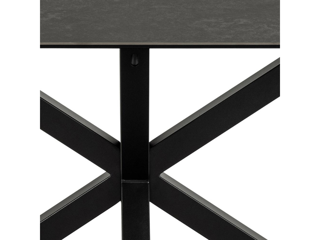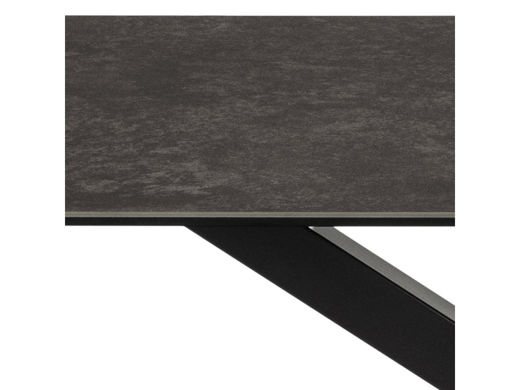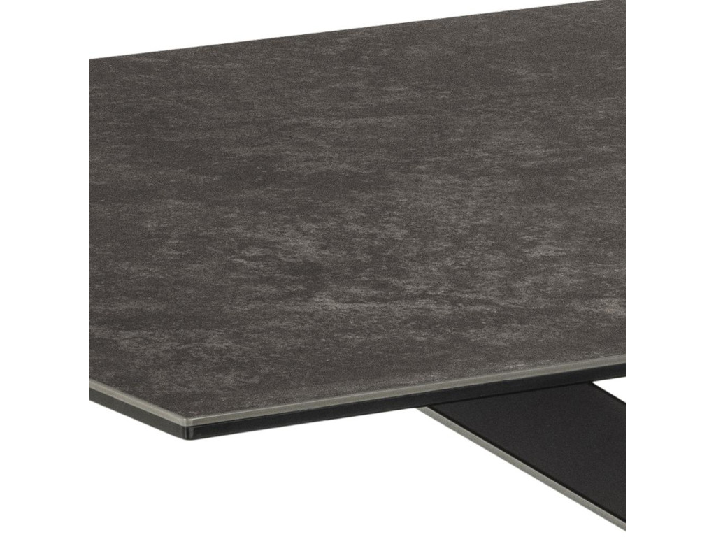 Jedálenský stôl Heaven v čiernej farebnej kombinácii spája modernú eleganciu s praktickosťou. Jeho doska z drsnej keramiky Fairbanks pôsobí robustne a štýlovo, pričom je odolná voči teplu aj poškriabaniu – ideálna na každodenné používanie.