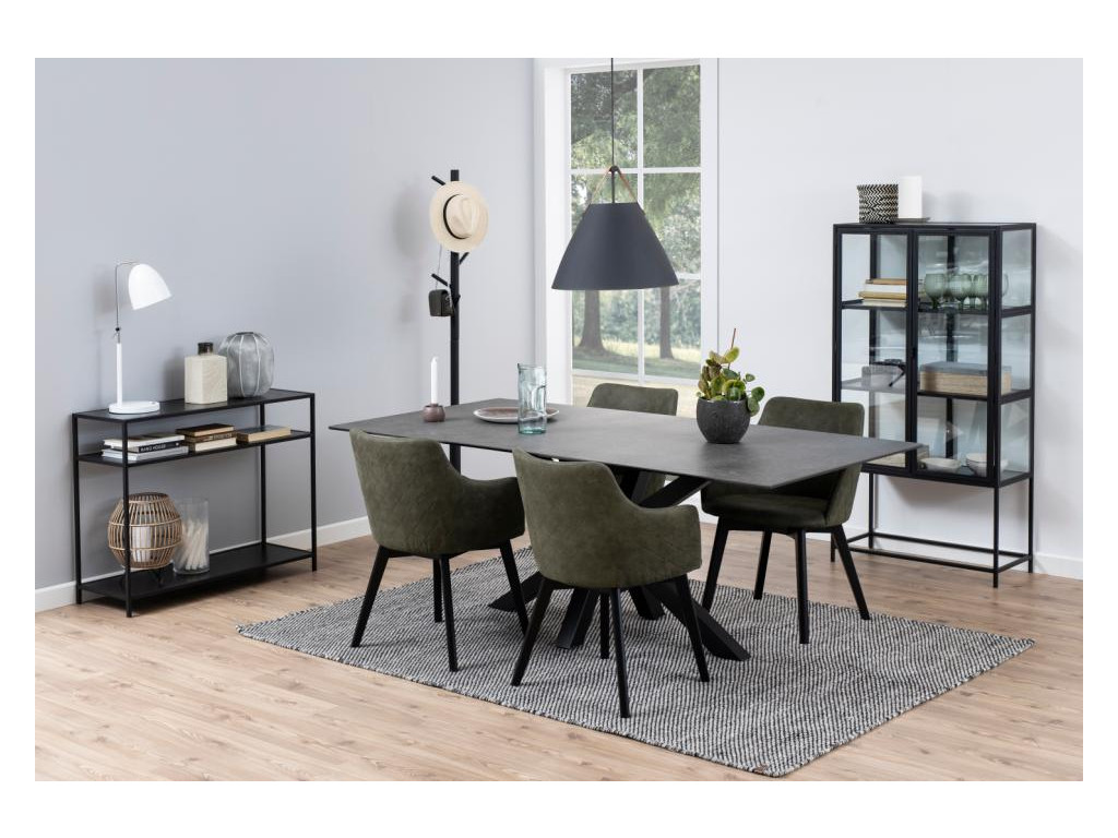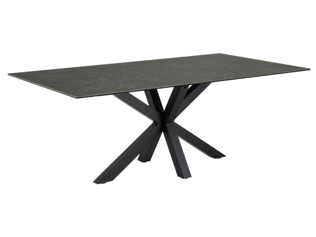 Hranatý stôl Heaven ponúka priestranný keramický povrch a robustnú čiernu konštrukciu. Vhodný do moderných jedální, kde je požiadavka na štýl aj funkčnosť. Jeho veľkosť je ideálna pre väčšie spoločenské stretnutia.