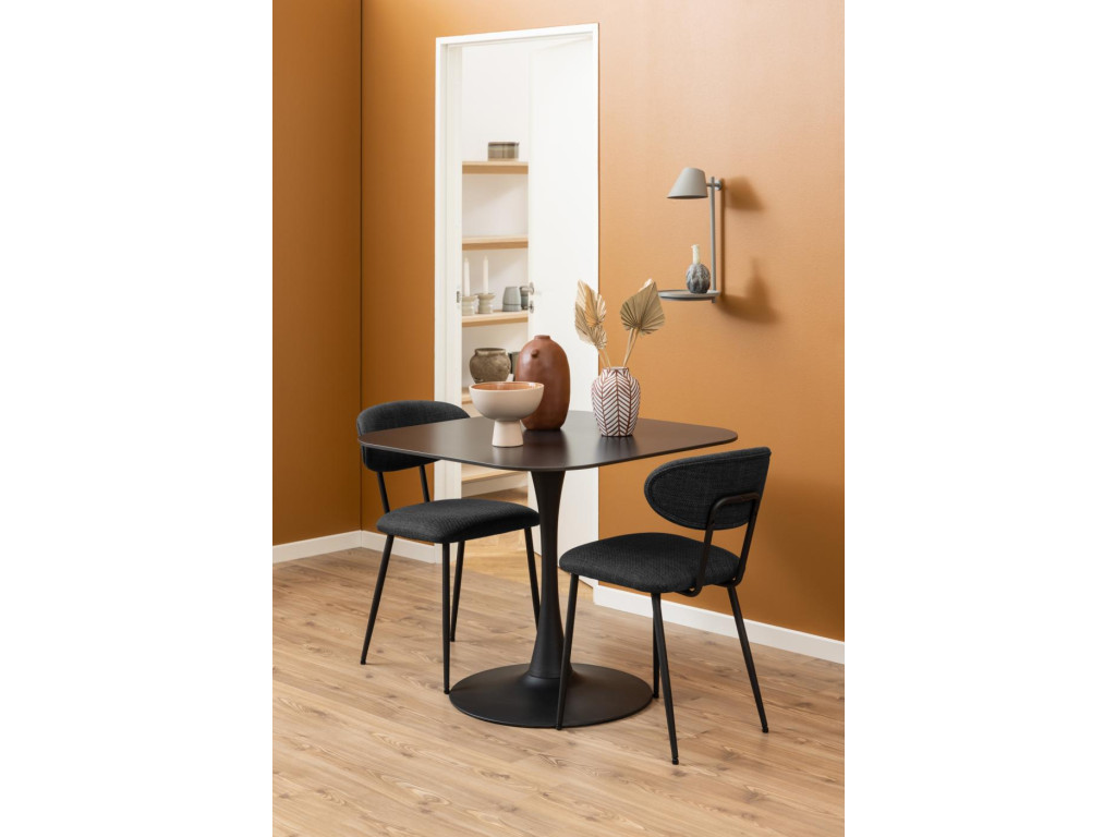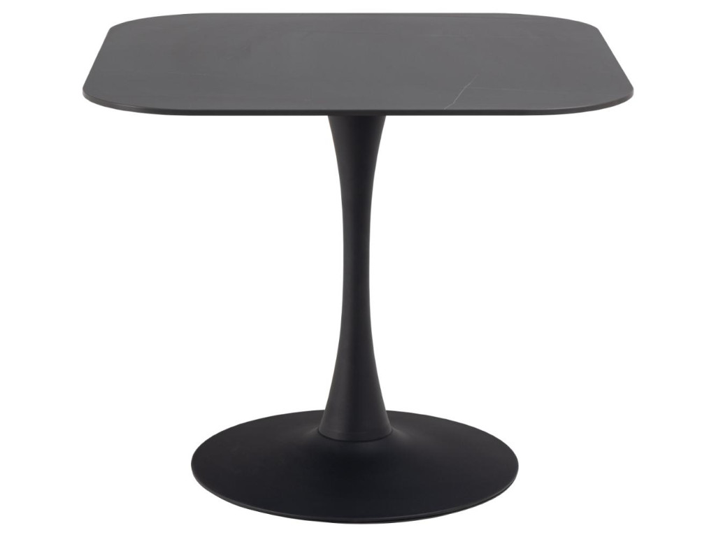 Štvorcový jedálenský stôl Malten so zaoblenými rohmi spája modernú estetiku s praktickými vlastnosťami. Matná čierna keramická doska Grantham s jemnými žilkami je odolná voči teplu a poškriabaniu, a zároveň sa ľahko udržiava. Podopiera ju čierna oceľová podnož v tvare trúbky s hrubým práškovým nástrekom, ktorá dodáva celku ľahký, vznášajúci sa vzhľad.