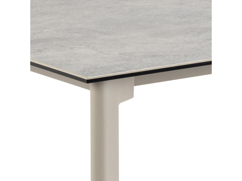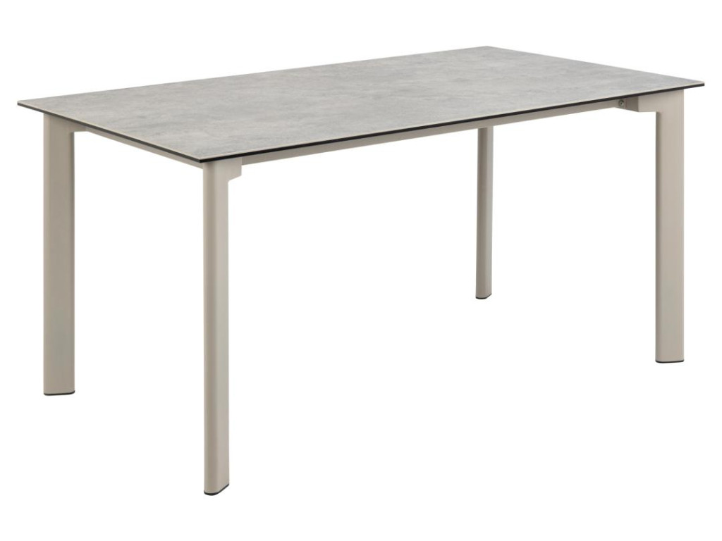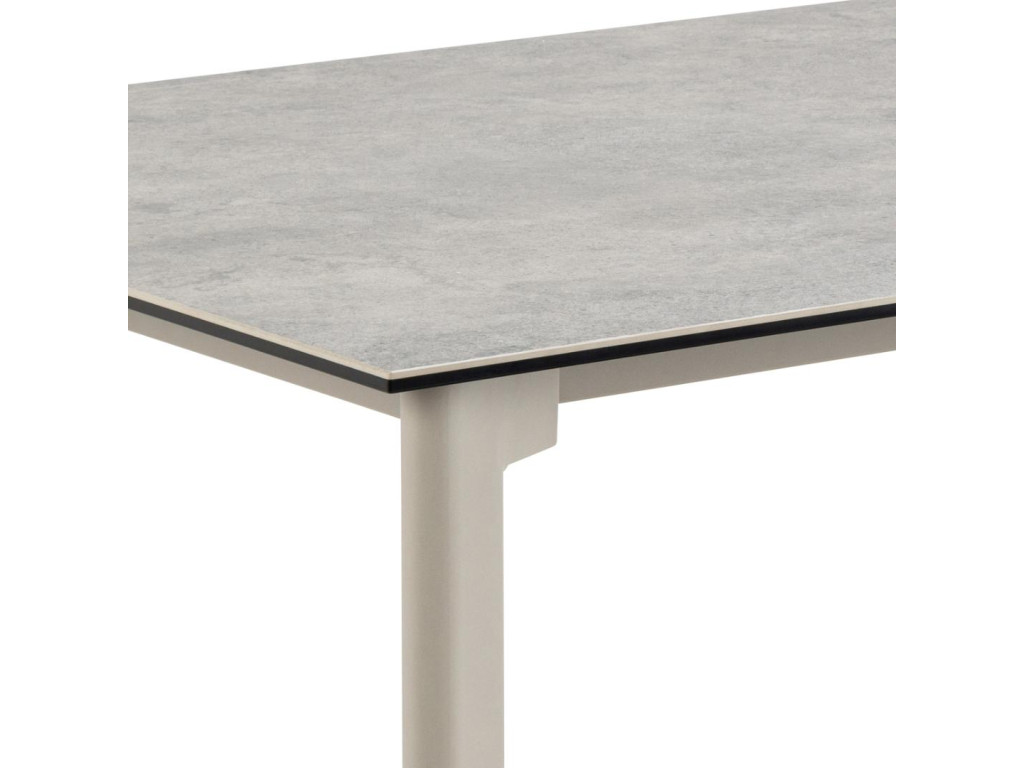 Stôl Palermo je moderný a odolný jedálenský kus s keramickou doskou v jemnom sivom odtieni. Kovová konštrukcia dodáva stabilitu a industriálny charakter. Vďaka rozmeru 160x90 cm pohodlne usadí šesť osôb.