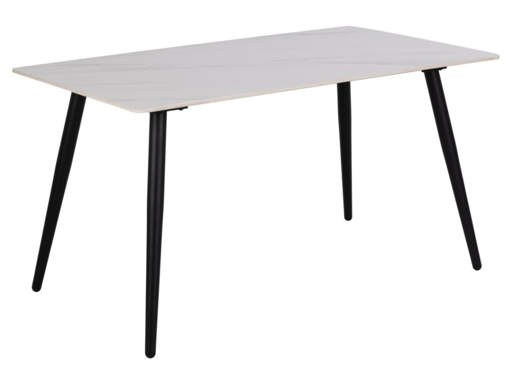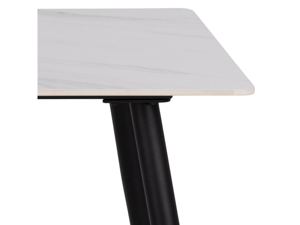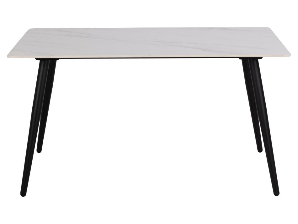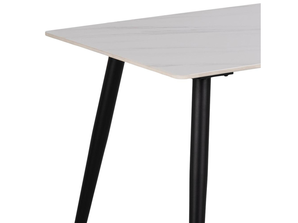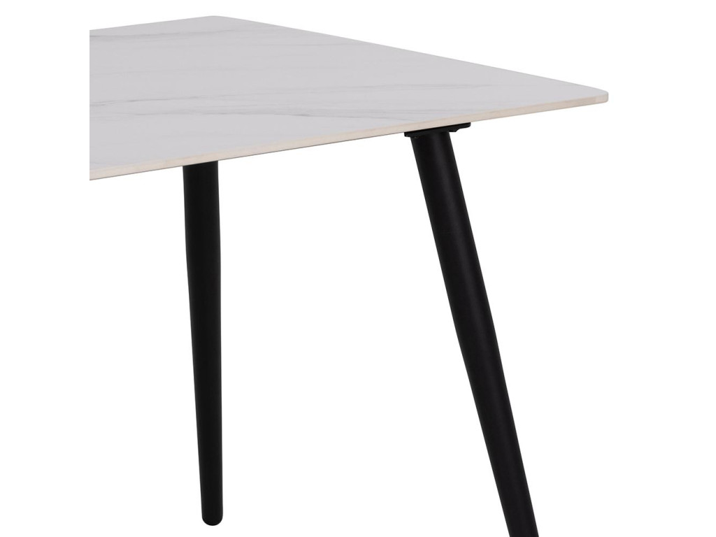 Obdĺžnikový jedálenský stôl Wicklow prináša kombináciu keramickej bielej dosky a stabilnej čiernej oceľovej podnože. Jeho čistý dizajn doplní každú modernú jedáleň. Hranatý tvar poskytuje dostatok priestoru pre pohodlné stolovanie. Rozmery sú vhodné pre štyroch až šiestich osôb.