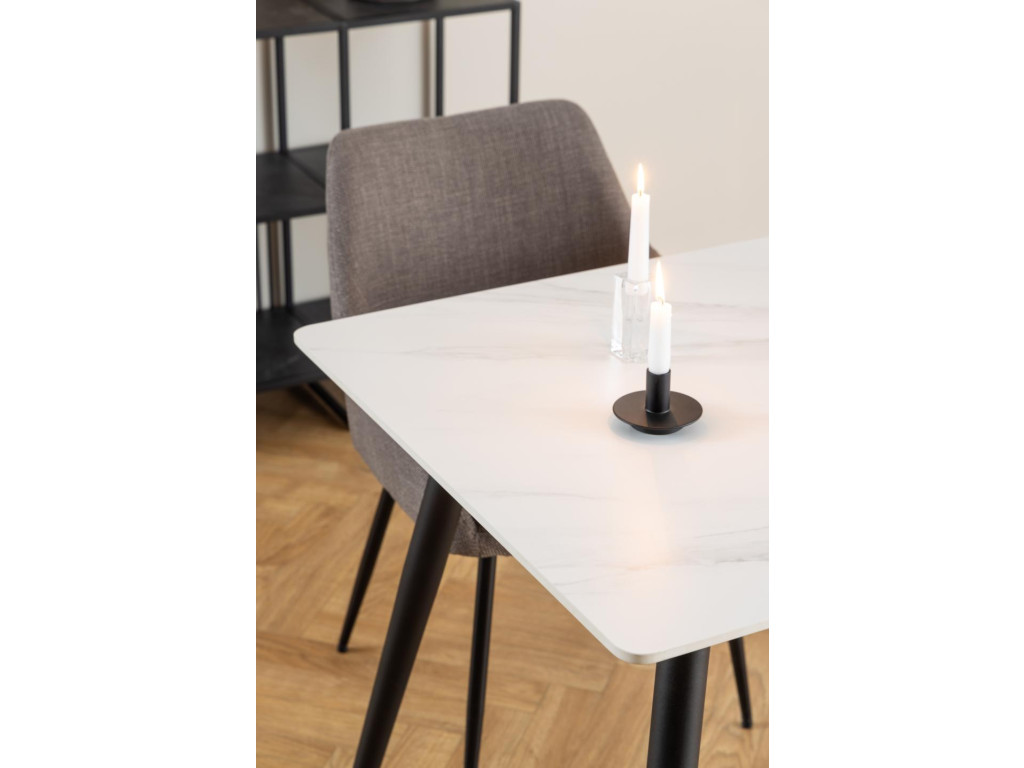Jedálenský stôl Wicklow v sebe spája nadčasový minimalistický dizajn a praktickosť pre každodenné použitie. Jeho obdĺžniková doska z bielej keramickej platne Unico s jemne textúrovaným povrchom a decentnými žilkami pripomína mramor a zároveň ponúka vynikajúcu odolnosť voči teplu, poškriabaniu či škvrnám.