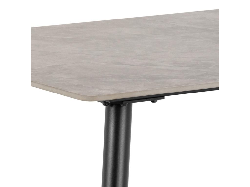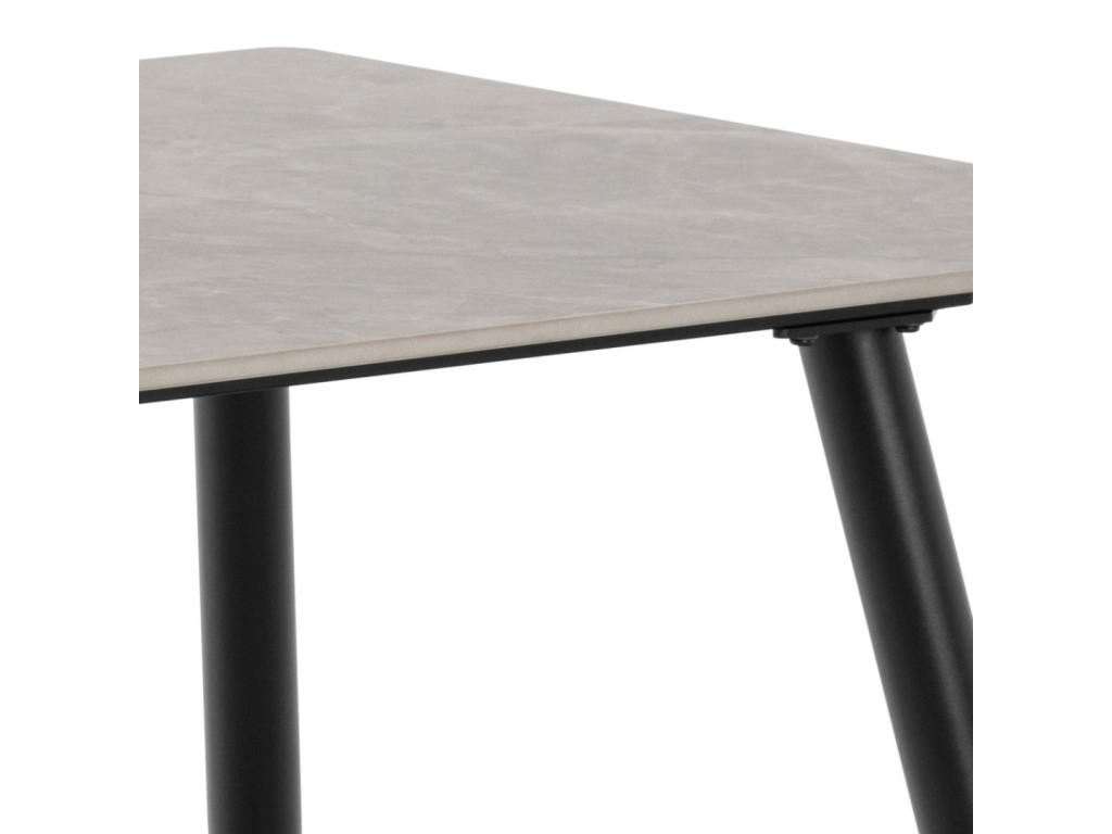 Sivá keramická doska Batis na stole Wicklow ponúka elegantný, decentný vzhľad s jemným leskom. Tento univerzálny odtieň sivej ľahko zapadne do škandinávskeho aj industriálneho interiéru a vďaka leštenému keramickému povrchu pôsobí veľmi uhladene.