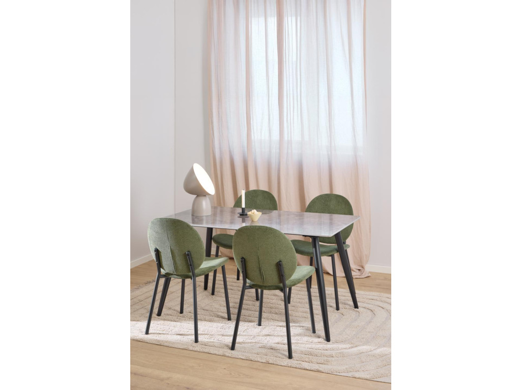 Odolnosť voči teplu, škvrnám a mechanickému poškodeniu z neho robí výbornú voľbu pre praktické domácnosti. Oceľové nohy s čiernym práškovým nástrekom dodávajú konštrukcii pevnosť a štýlový kontrast.
