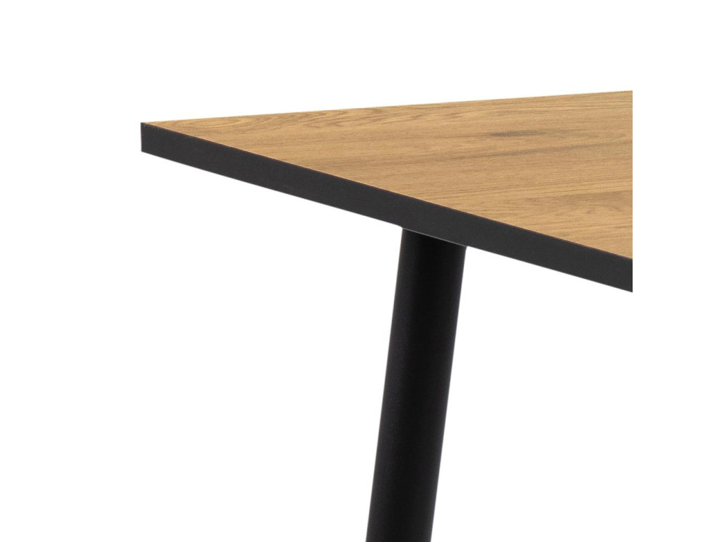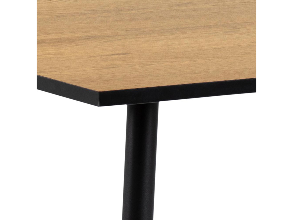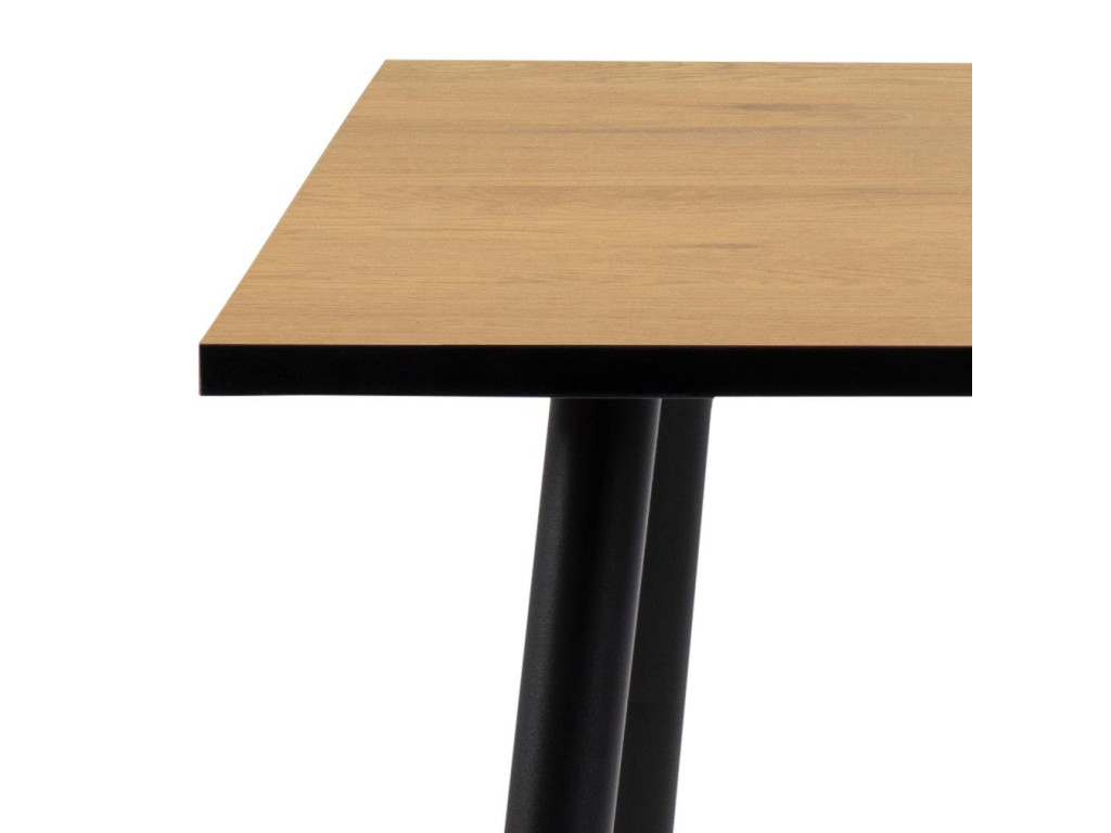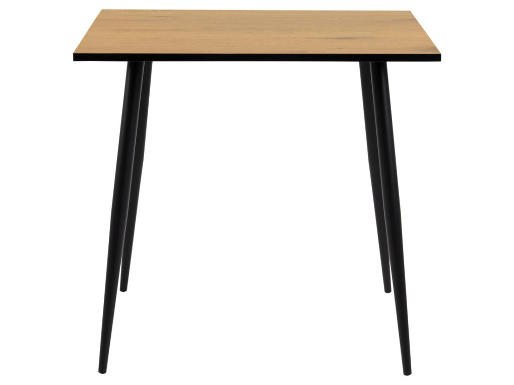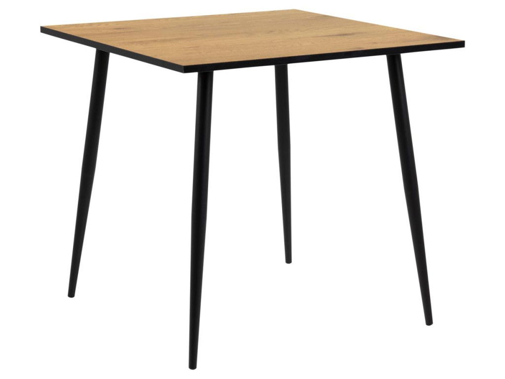 Štvorcový jedálenský stôl Wilma je ideálnou voľbou do menších priestorov alebo ako doplnok do modernej jedálne. Doska z melamínu v dekore surového divokého duba s výraznou štruktúrou dreva a kontrastnými čiernymi hranami dodáva stolu prírodný vzhľad s moderným akcentom. Stabilitu zabezpečuje štíhla, kovová podnož v čiernej práškovo lakovanej úprave. Vďaka kvalitným materiálom a jednoduchému dizajnu je stôl zároveň praktický, odolný a ľahko udržiavateľný.