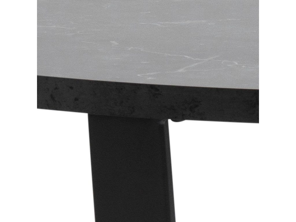 Okrúhly jedálenský stôl Amble v prevedení melamínový čierny mramor Izmir / matná čierna oceľ prináša do jedálenského priestoru sofistikovaný a moderný vzhľad. Mramorová potlač Izmir na doske pôsobí luxusne, no vďaka melamínovému povrchu je stôl zároveň praktický, odolný a ľahko udržiavateľný. Čierna oceľová základňa so štruktúrovaným práškovým nástrekom zaručuje stabilitu a dizajnovú pevnosť, čím zvýrazňuje kontrast medzi povrchom a konštrukciou.