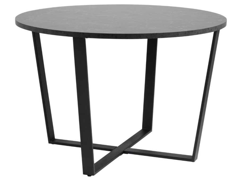 S priemerom Ø110 cm stôl pohodlne usadí až štyroch ľudí a skvele sa hodí do kuchyne alebo menšej jedálne. Kombinácia čierneho mramorového vzhľadu a čiernej ocele vytvára nadčasový a zároveň výrazný dizajnový prvok, ktorý sa stane centrom vášho priestoru.