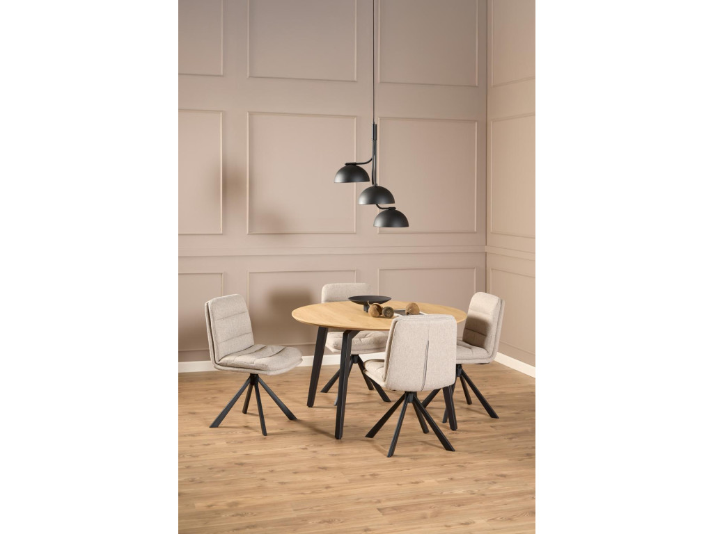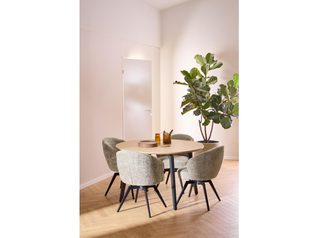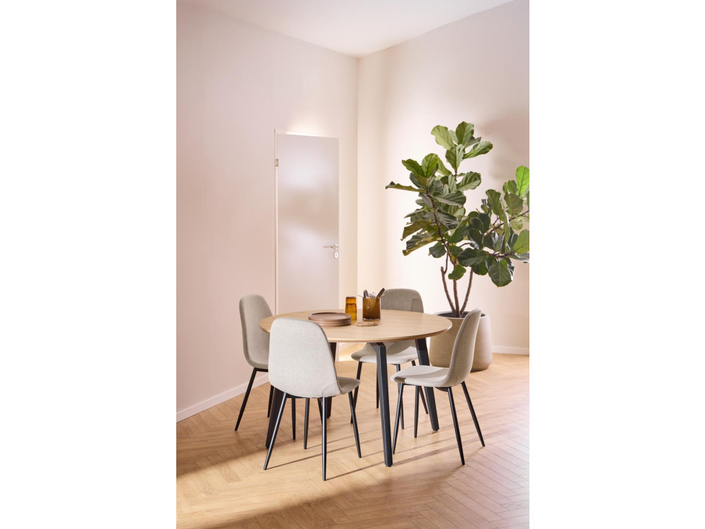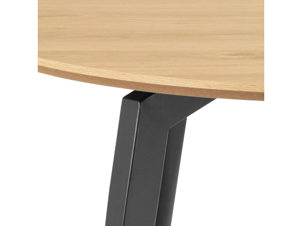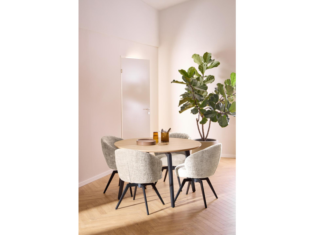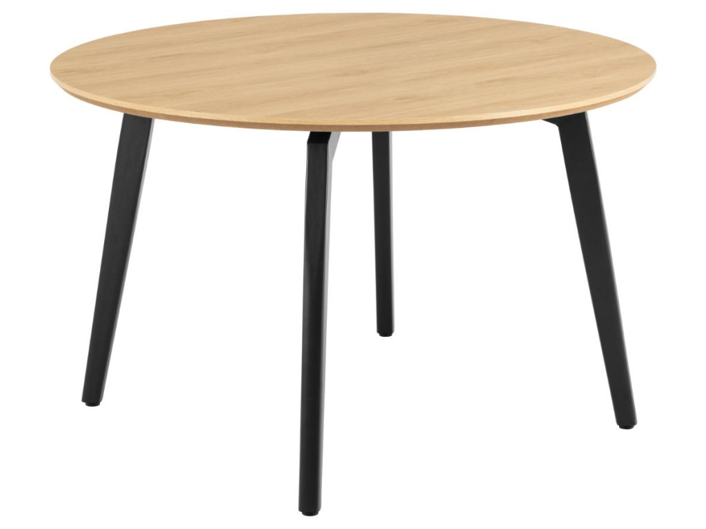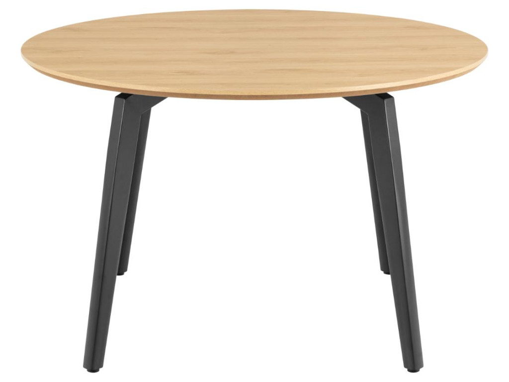 Stôl Cadiz s priemerom 120 cm prináša kvalitné materiály a nadčasový dizajn. Dubová melamínová doska a čierna oceľová podnož tvoria pevný a elegantný celok. Ideálny pre 4–6 osôb.