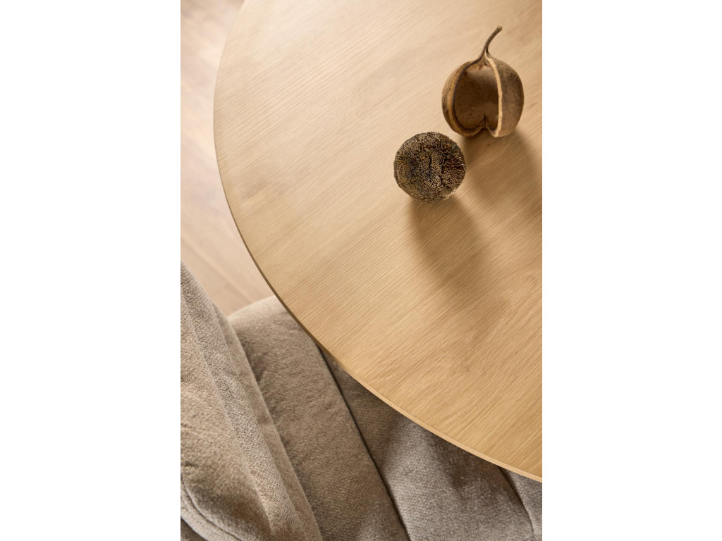 Jednoduchosť, funkčnosť a nadčasový vzhľad sa spájajú v jedálenskom stole Cadiz. Jeho okrúhla doska s dubovým dekorom vytvára teplý a prirodzený dojem, zatiaľ čo čierne oceľové nohy s matným povrchom mu dodávajú stabilitu a moderný kontrast. Vďaka kompaktným rozmerom je ideálny pre menšie priestory, no pohodlne usadí až 4 osoby na príjemné raňajky, večeru či posedenie s priateľmi.