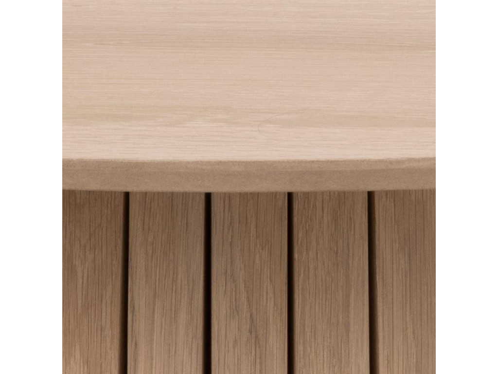 Stôl Christo s bielenou dubovou dyhou pôsobí sviežo a elegantne. Okrúhly tvar podporuje rovnosť a konverzáciu pri stole. Zaujímavý detail predstavuje lamelová podnož, ktorá dodáva stolu osobitý charakter. Je skvelou voľbou do škandinávsky ladených interiérov.