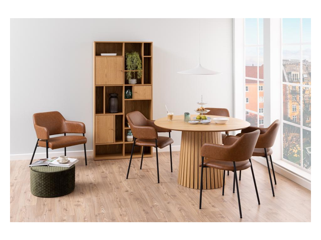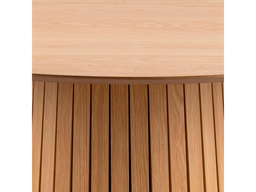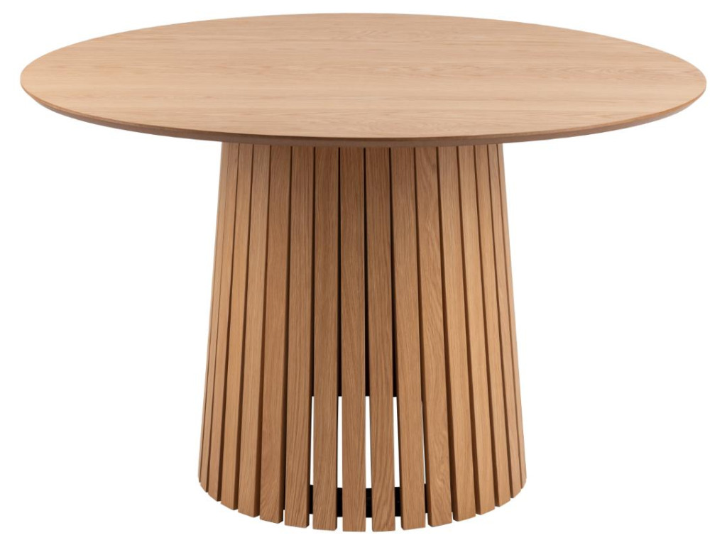 Jedálenský stôl Christo s PU lakovanou dubovou dyhou v prírodnom odtieni spája estetiku s praktickosťou. Okrúhla stolová doska ponúka dostatok miesta pre 4 osoby. Stĺpiková noha s lamelovou prednou stranou vytvára dizajnový akcent. Vhodný do svetlých a prirodzených interiérov.