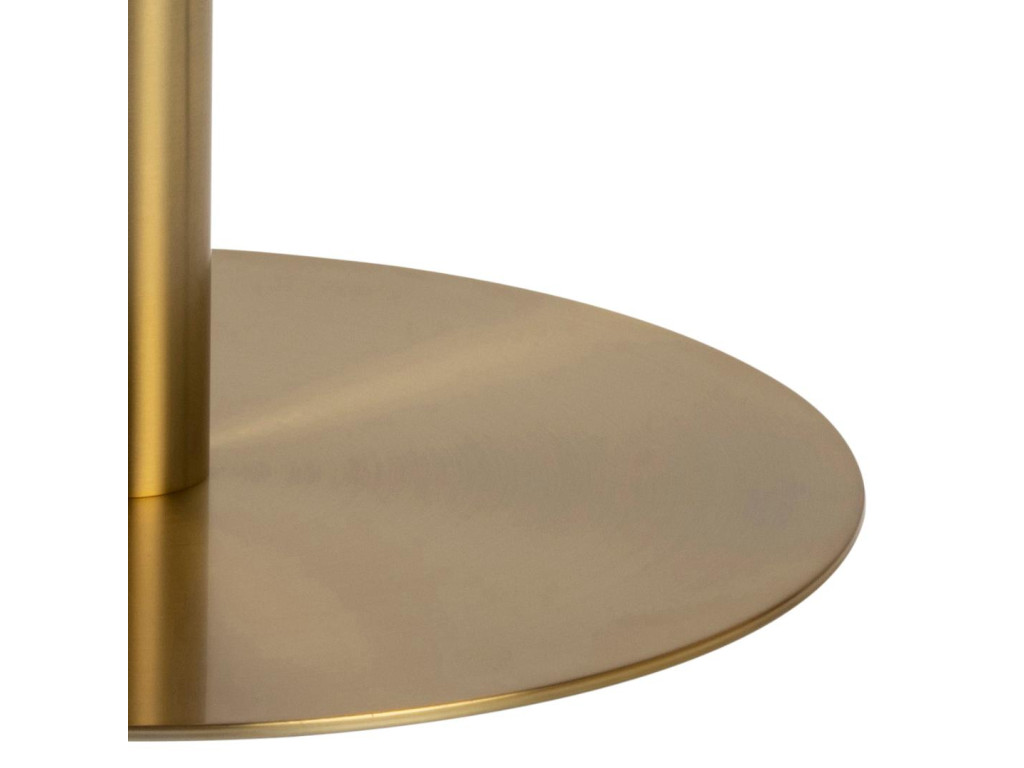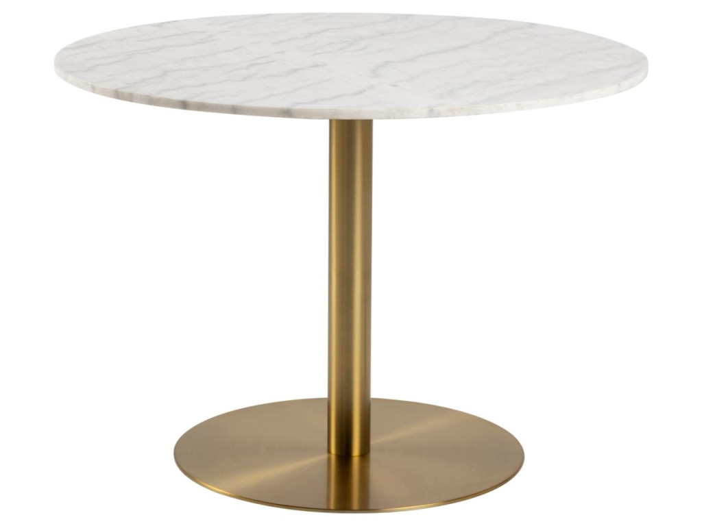 S priemerom 105 cm a výškou 75 cm ponúka stôl dostatok miesta až pre 4 osoby, pričom jeho okrúhly tvar podporuje spoločenskú atmosféru a príjemné stolovanie. Brúsená mosadz na základni dodáva stolu luxusný vzhľad, zatiaľ čo stabilná kovová konštrukcia zaručuje dlhú životnosť a pevnosť.