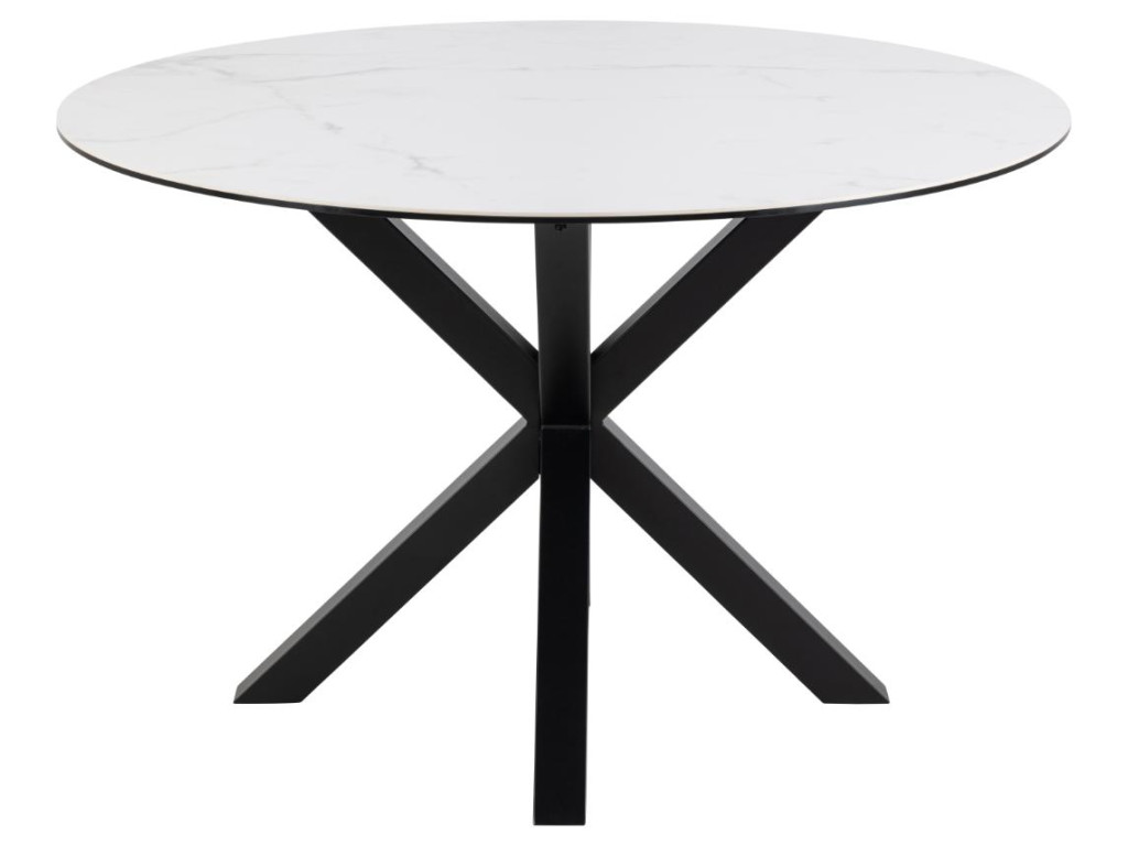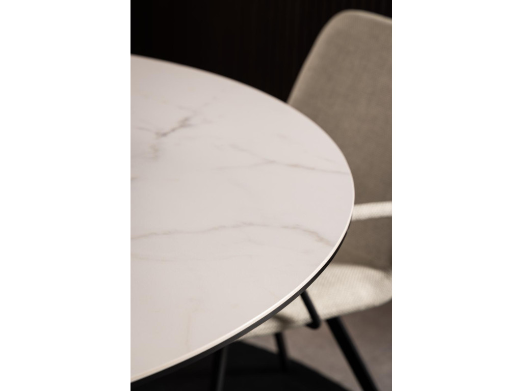 Okrúhly stôl Heaven s bielou keramickou doskou v dekore mramoru je ideálnym centrálnym bodom vašej jedálne. Jeho čisté línie a kontrastná čierna podnož z ocele zaujmú na prvý pohľad. Oceľová konštrukcia zabezpečuje stabilitu, zatiaľ čo kruhový tvar podporuje príjemnú atmosféru pri stolovaní. Hodí sa do moderných i minimalistických priestorov.