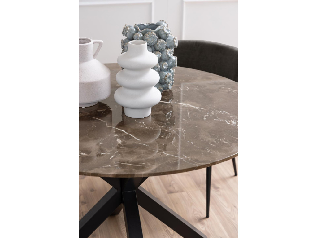 Okrúhly jedálenský stôl Heaven - hnedý mramor / čierna