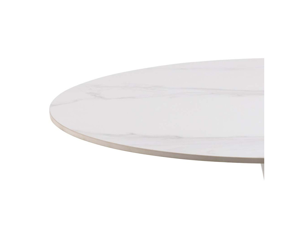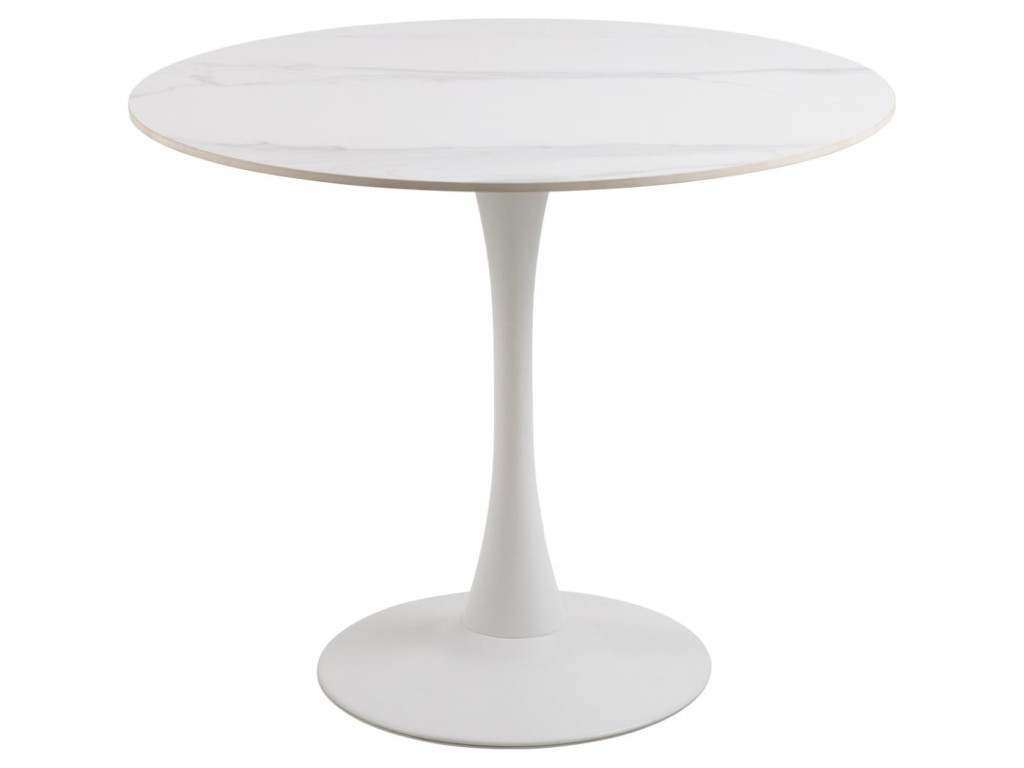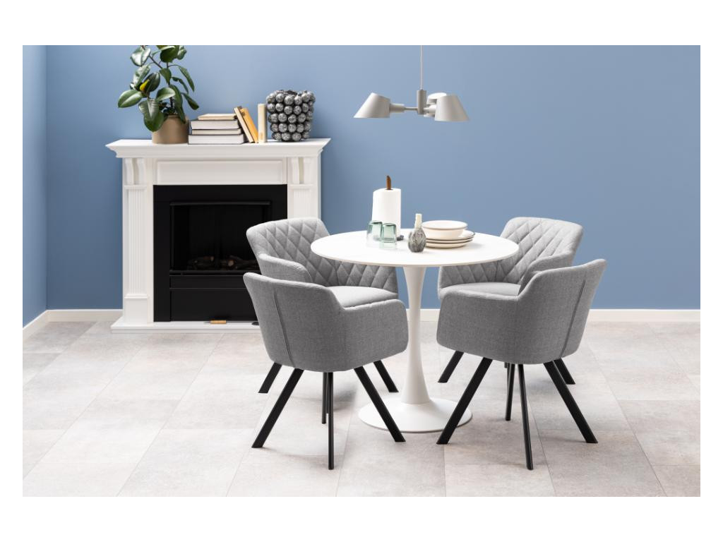 Biela verzia stola Malten pôsobí vzdušne a elegantne. Keramická doska je odolná voči škvrnám a poškrabaniu. Okrúhly tvar podporuje konverzáciu pri stole a zaberá minimum miesta.