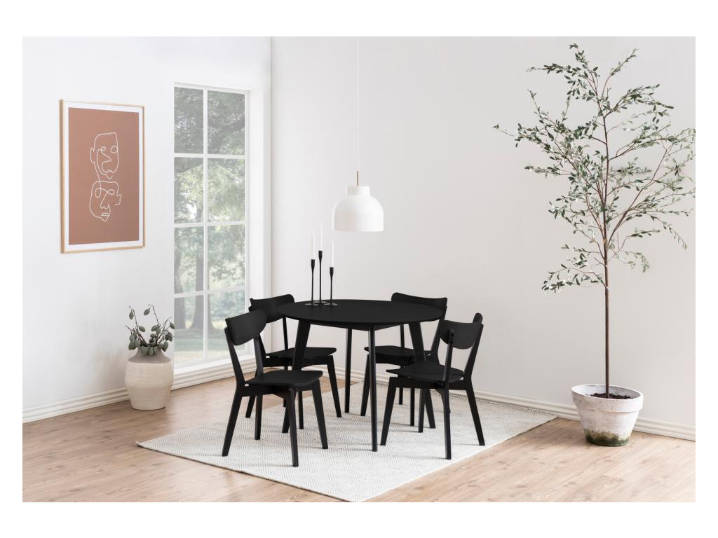Jedálenský stôl Roxby v matnej čiernej farbe zaujme okrúhlym dizajnom a kvalitnými materiálmi. Je ideálny pre moderné interiéry, ktoré uprednostňujú čisté línie a nadčasovosť.