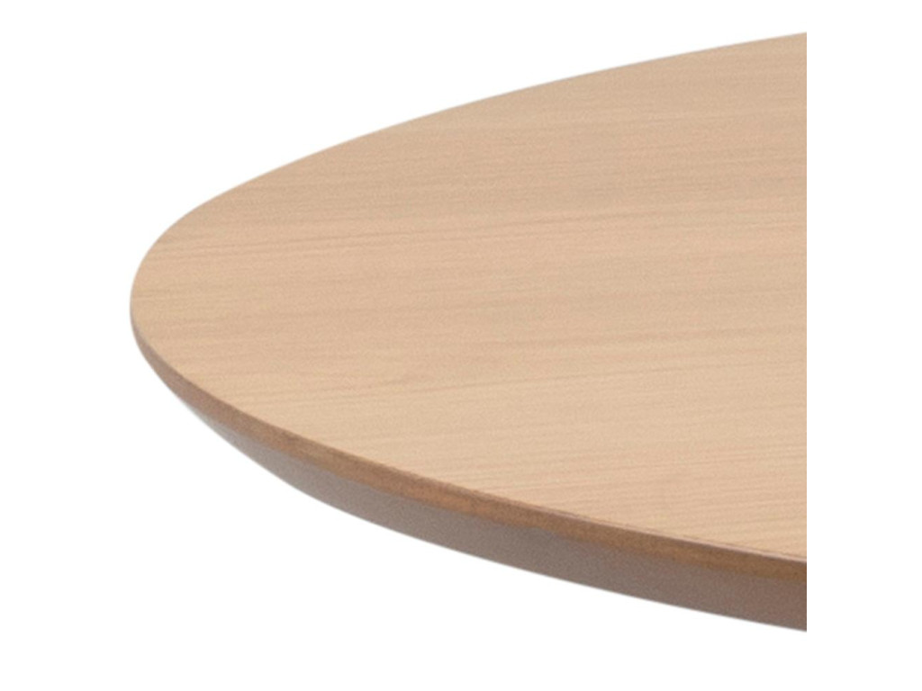Kombinácia dubovej dyhy na doske a matnej čiernej podnože z kaučukovníka robí z tohto stola dizajnový kontrastný prvok. Vrchná doska v prírodnom dekore dodáva teplo, zatiaľ čo podnož zabezpečuje stabilitu a moderný vzhľad.