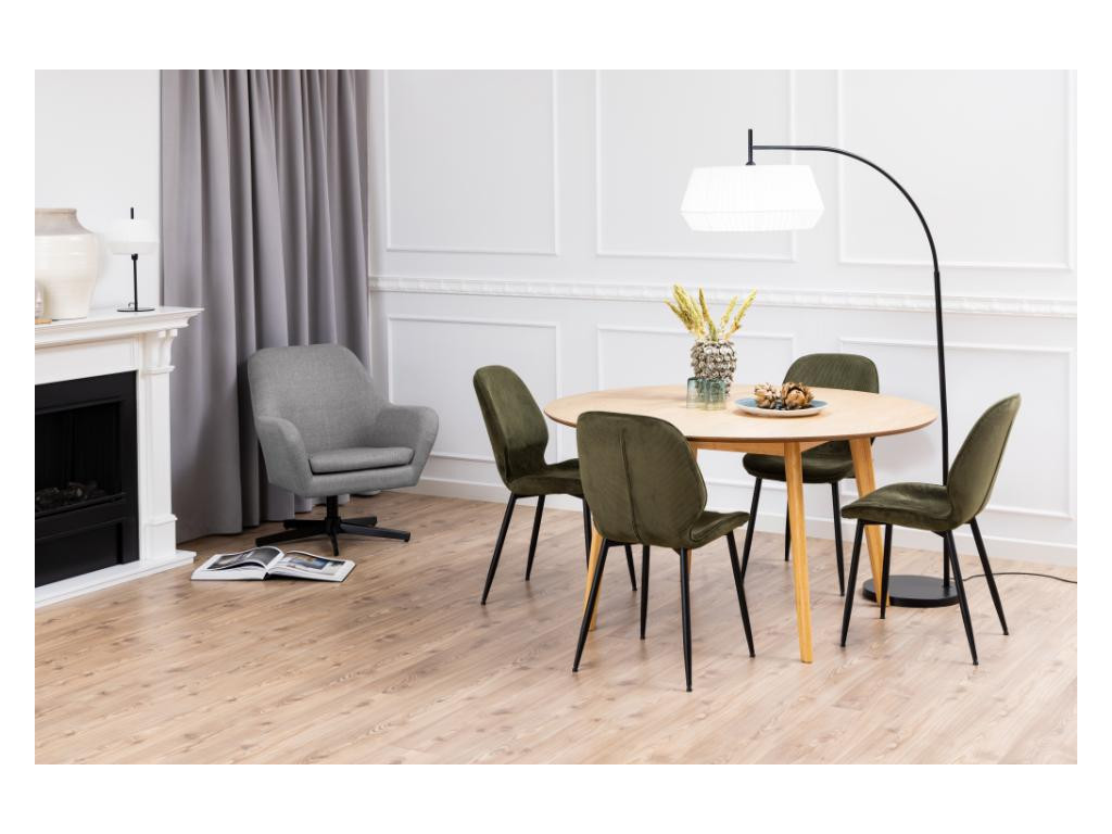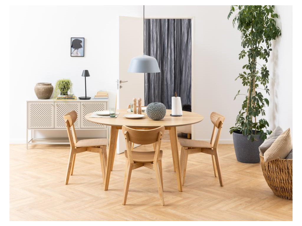 Zväčšite pocit priestrannosti miestnosti. Vďaka okrúhlemu tvaru je tento jedálenský stôl skvelou voľbou pre menšie mestské priestory. Je tiež ľahké vytvoriť útulnú atmosféru, pretože všetci sedia blízko seba. Prírodný dubový vzhľad stola sa bez problémov kombinuje s tmavými aj svetlými farbami v interiéri.