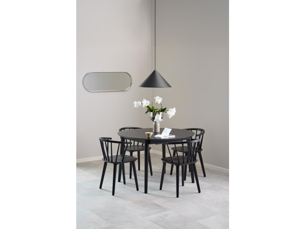 - Rozmery a základňa: Ø115/154 × 75 cm, 4 okrúhle zúžené nohy z čierneho moreného kaučukovníka