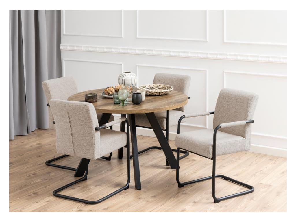 Zalida je okrúhly jedálenský stôl, ktorý dokonale vyvažuje štýl a funkčnosť. Kompaktný na bežné dni, priestranný na víkendy – vďaka dvom prídavným doskám sa zmení na oválny stôl s miestom až pre 8 osôb. Doska s dubovým vzhľadom vnesie do priestoru teplo a prirodzenosť, zatiaľ čo čierna oceľová základňa s hrubým práškovým nástrekom pridáva industriálny nádych.