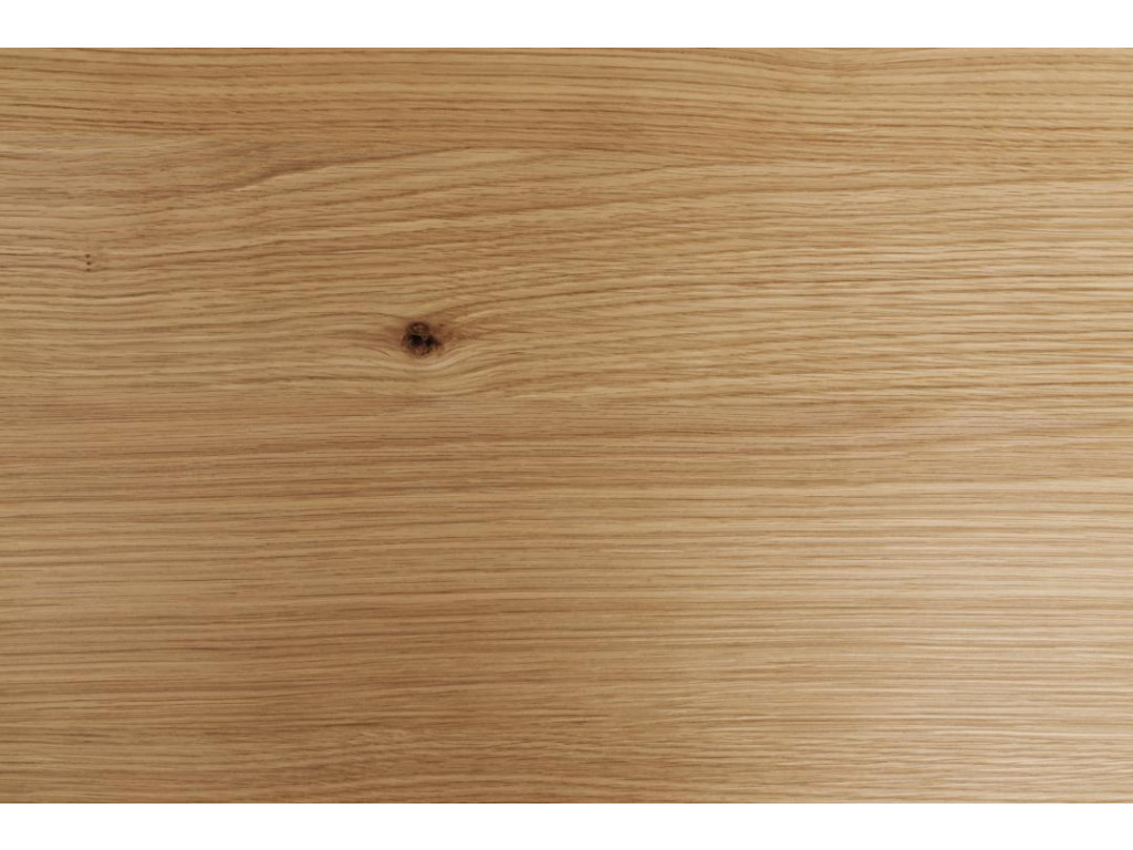 Oválny jedálenský stôl Heaven predstavuje harmonické spojenie prírodného vzhľadu a moderného industriálneho štýlu. Jeho veľkorysá doska z dyhy divokého duba so zvýraznenou kresbou a olejovaným povrchom vnáša do interiéru hrejivosť a prirodzený šarm, zatiaľ čo 4-ramenná sochárska oceľová podnož v matnej čiernej farbe vytvára kontrast a zaisťuje stabilitu.