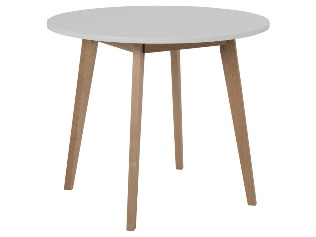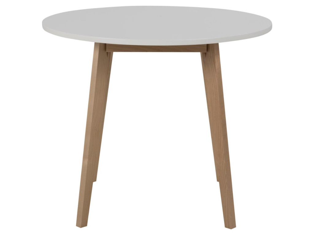 Raven round dining table, top white PU painted MDF, base NC lacquered birch, Ø90x76 cm