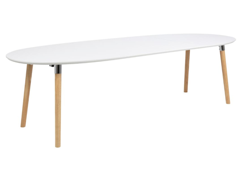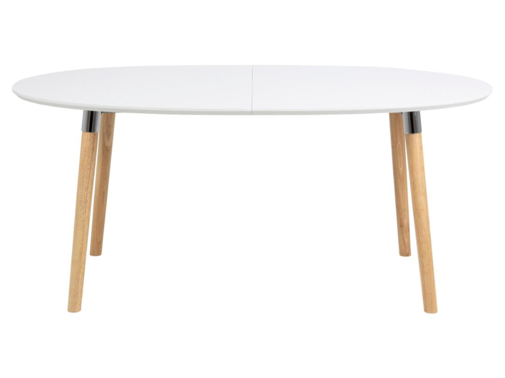 Nádherný oválny jedálenský stôl s bielou lakovanou MDF doskou a podstavcom z prírodného kaučukovníka. Vďaka funkcii rozkladania z 170 až na 270 cm sa perfektne hodí na väčšie stretnutia. Výška 74 cm zabezpečuje pohodlné sedenie. Moderný a funkčný doplnok do svetlého interiéru.