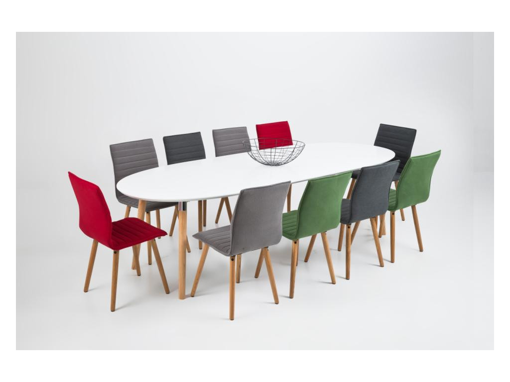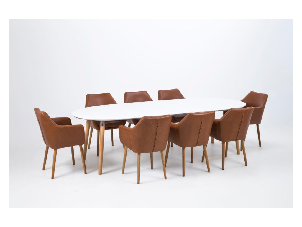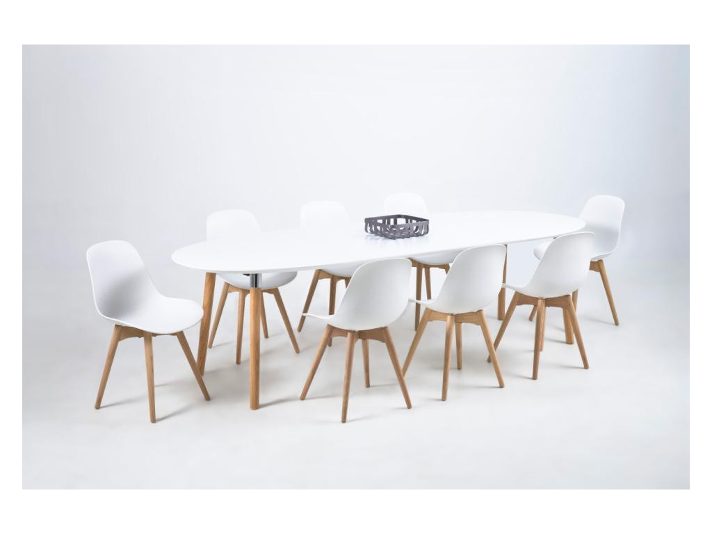 Belina – oválny jedálenský stôl, biela doska / dubovo morené nohy